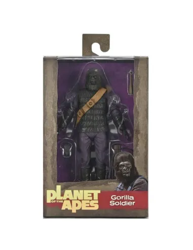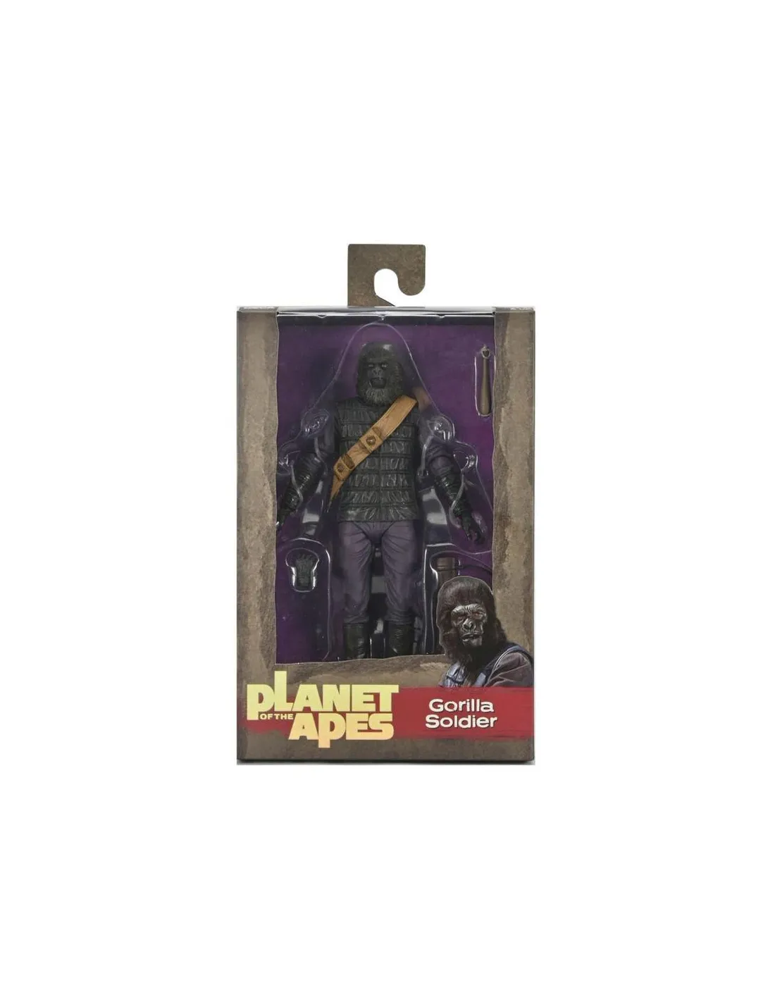 Neca presenta la figura de Gorilla Soldier. Mide 18 cm y está basada en el personaje de la pelÃcula de 1968 "Planet of the Apes" ("El planeta de los simios" en España). Incluye 1x bláster, 1x mano alternativa y 1x porra. Se presenta en una caja con ventana.