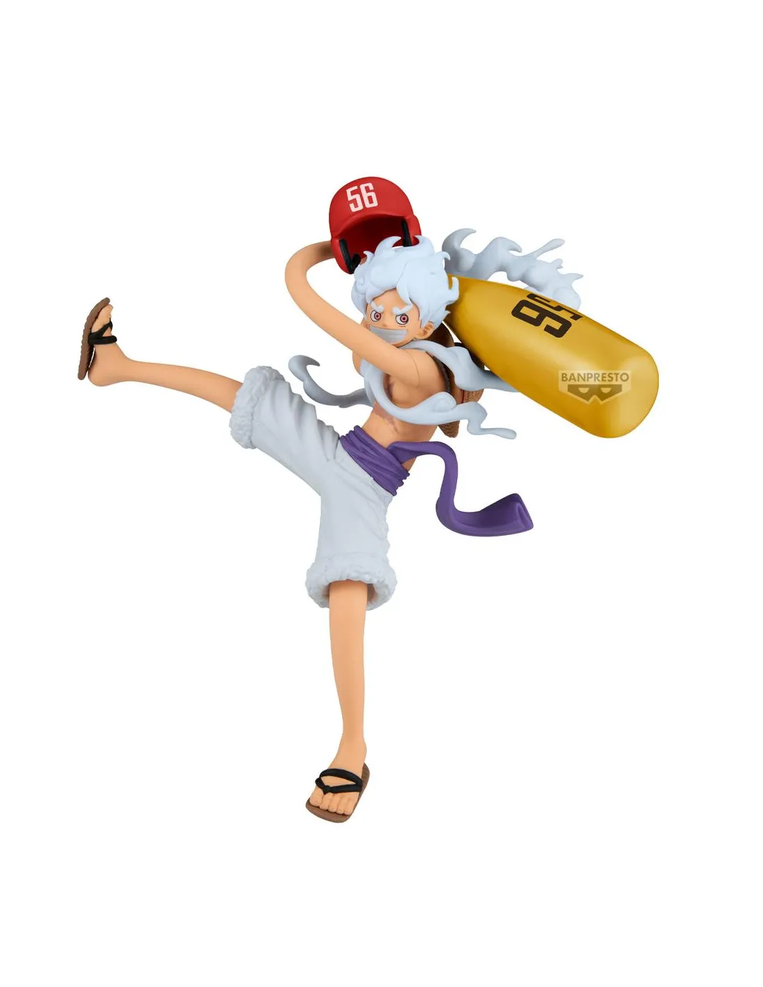 Esta versión de Luffy captura toda la fuerza y expresividad del modo Gear 5, destacando por su pose de combate con efectos de humo y energía. Es una figura que transmite movimiento y poder, perfecta para exponer junto a otras de la misma colección.