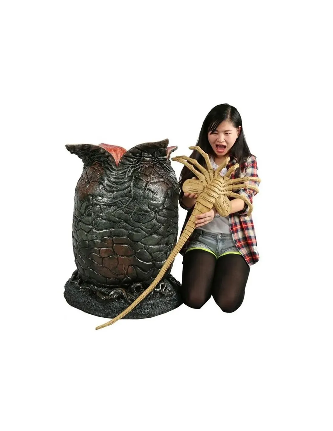 Neca presenta esta réplica a tamaño real 1:1 del huevo alien y del facehugger que habita en su interior. Se trata de una réplica fiel hecha en latex y gomaespuma, de unos 91 cm de altoaproximadamente, basado en la película de 1986 "Alien el Octavo pasajero". La estructura del huevo permite que se abra por la parte de arriba. Contiene un facehugger también de tamaño real queaguarda en su interior preparado para saltar sobre la cara del ingenuo que se acerque y lo abra. El huevo xenomorfo ha sido hecho y pintado con sumo detalle. Además incluye luz LED para recrear elamenazador efecto resplandeciente de su interior (requiere pilas 3x AAA-no incluidas) .