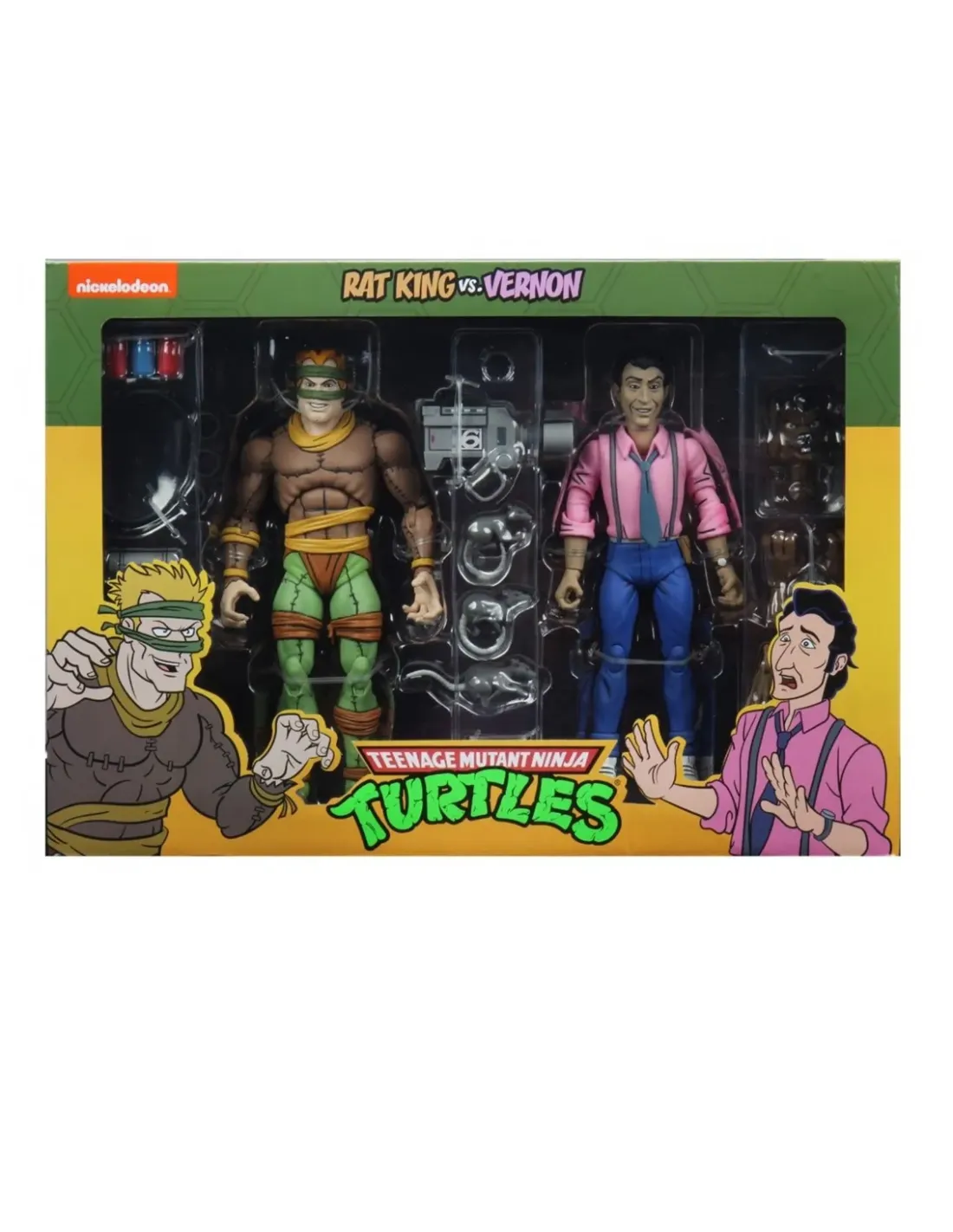 Neca presenta este pack de dos figuras articuladas de Rat King y el camarógrafo de Channel 6 Vernon Fenwick, inspiradas en la serie de dibujos animados de "Teenage Mutant Ninja Turtles" de los años 80. Hechas en PVC, miden unos 18 cm y vienen cada uno con varios accesorios, como granadas de refresco, bote de mutágeno con tapa extraíble y una flauta en el caso del Rat King, y una cámara Channel 6 y manos y cabezas intercambiables en el caso de Vernon.