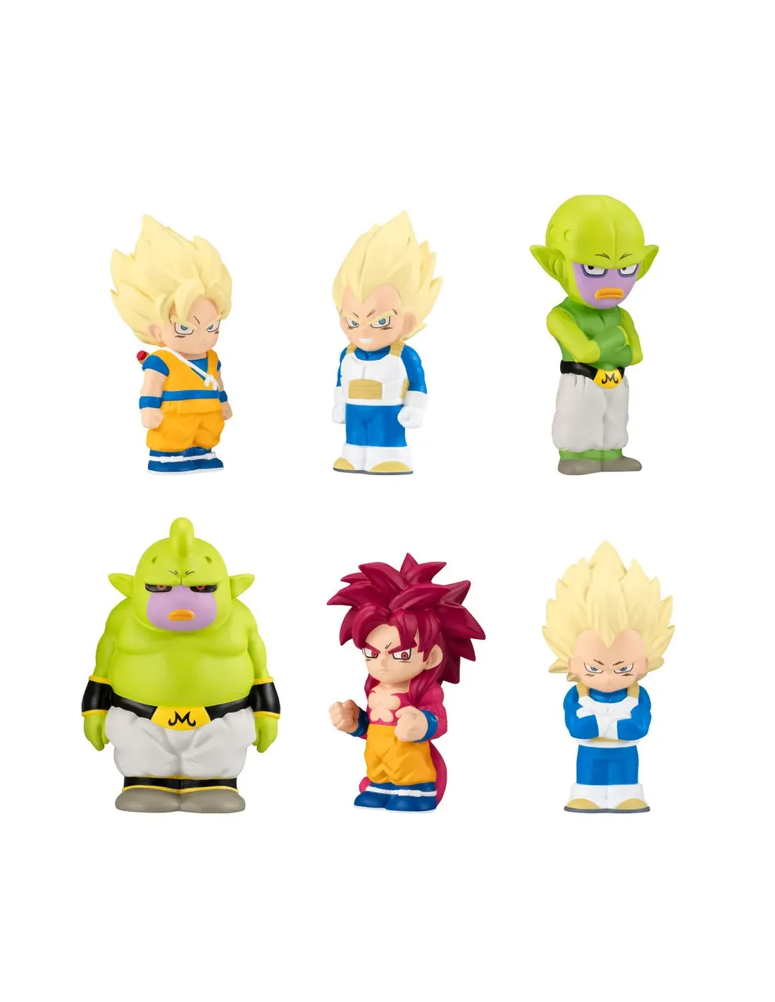 Características de la figura SOFBITS Dragon Ball 2 (1 unidad aleatoria)La colección **SOFBITS Dragon Ball 2** trae a los fans de la saga una selección exclusiva de figuras **mini en formato aleatorio**, con algunos de los personajes más icónicos en sus transformaciones más potentes. Estas figuras son ideales tanto para **coleccionistas** como para **regalo para aficionados de Dragon Ball**, gracias a su diseño compacto y detalles estilizados.Figuras emblemáticas en versión miniCada unidad incluye una figura aleatoria de la serie, representando a personajes en sus formas más reconocidas. El diseño tipo "chibi" o SD (super deformed) resalta los rasgos característicos con un acabado divertido y coleccionable.Incluye 1 figura sorpresa de entre varios personajes disponiblesEstilo mini con acabados coloridos y proporciones estilizadasPerfecto para exponer o regalarModelos disponibles en esta colecciónLa serie Dragon Ball 2 incluye algunos de los personajes más potentes y queridos por los fans, en versiones transformadas:Goku Super Saiyan (mini)Vegeta Super Saiyan (mini)Goku Super Saiyan 4 (mini)Vegeta Super Saiyan 3 (mini)Majin KuMajin DouProducto oficial y selladoCada figura viene en su envase original, cerrado y aleatorio, lo que garantiza la autenticidad del producto y mantiene la sorpresa hasta el momento de abrirlo.Licencia oficial Dragon BallContenido: 1 figura aleatoria por unidadMateriales plásticos de calidadIdeal para fans y coleccionistasGracias a su tamaño compacto y diseño exclusivo, estas figuras son ideales para decorar escritorios, vitrinas o cualquier espacio personal. También son una opción perfecta como detalle para fans del universo Dragon Ball.Diseño divertido y compactoAltura aproximada: entre 5 y 7 cm (requiere confirmación)Edición limitada o por series (según stock)Otras especificacionesContenido del paquete: 1 figura aleatoriaNo se puede elegir el personajeRecomendado para mayores de 3 años