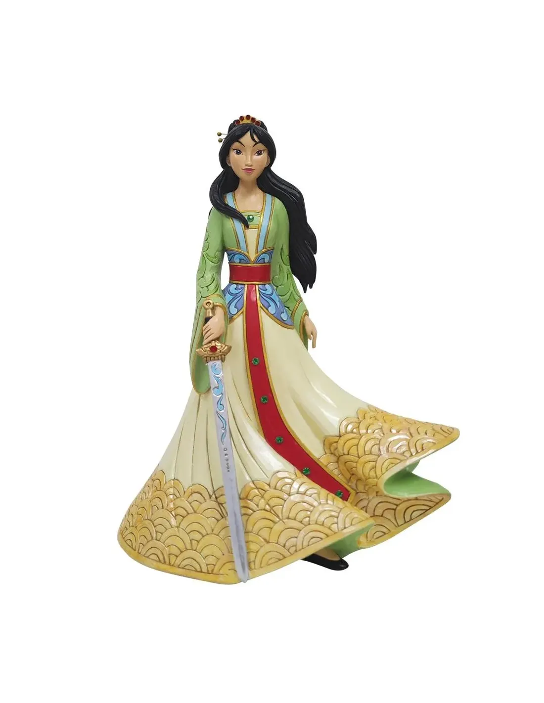 Características de la Figura Enesco Disney Mulán DeluxeLa figura Enesco Disney Mulán Deluxe es una pieza de colección excepcional que rinde homenaje a uno de los personajes más icónicos del universo Disney. Diseñada con una estética cuidada y gran atención al detalle, esta figura es ideal tanto para coleccionistas exigentes como para fans que buscan una representación artística de Mulán con acabado premium.Diseño elegante y acabados premiumMulán aparece representada en una postura heroica con la espada en mano, capturando la valentía, el honor y la determinación que caracterizan al personaje. El vestido tradicional que luce está cuidadosamente esculpido y pintado, con una paleta de tonos verdes, dorados y rojos que realzan la estética oriental y el valor simbólico del personaje.Diseño basado en la película original de DisneyColores vivos con detalles meticulososPostura con espada que simboliza fuerza y determinaciónCalidad garantizada por EnescoFabricada por Enesco, marca reconocida internacionalmente por su línea de figuras decorativas con licencia oficial, esta pieza destaca por su acabado artesanal. Los detalles faciales, la textura de la ropa y el pintado a mano ofrecen un resultado de alta calidad que enriquece cualquier vitrina o estantería.Figura con licencia oficial DisneyDetalles pintados a manoIdeal como regalo o colección personalOtras especificacionesFabricante: EnescoLicencia oficial DisneyMaterial: Este apartado requiere más información para completarse correctamente.Dimensiones: Este apartado requiere más información para completarse correctamente.