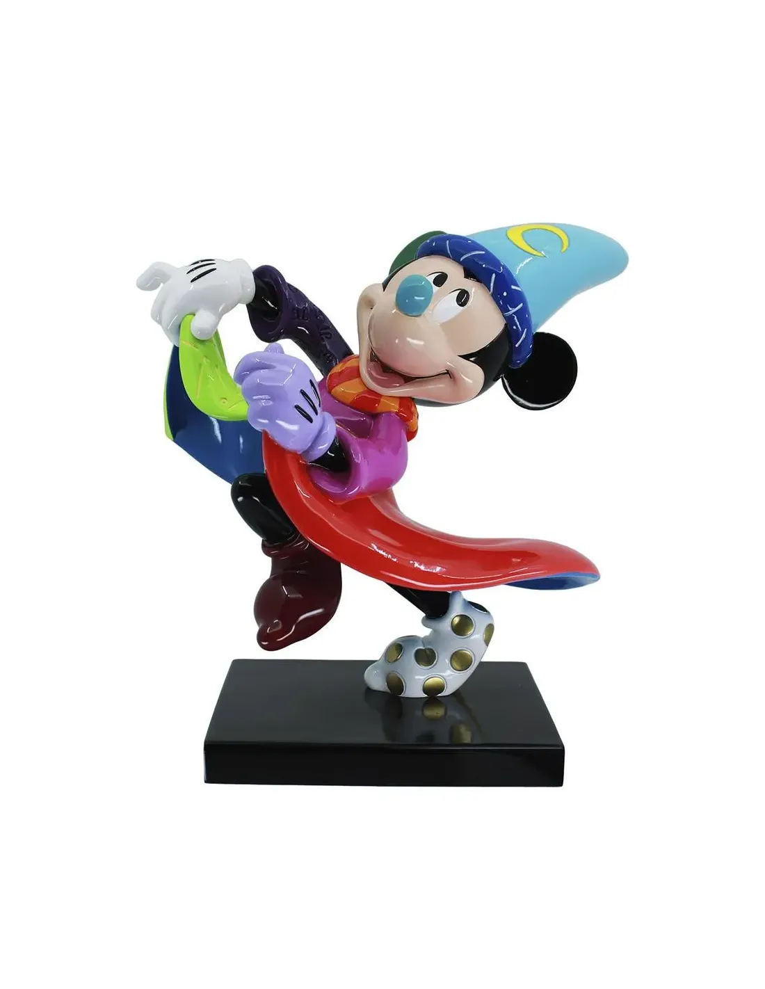 Características de la Figura Enesco Disney Mickey Mouse HechiceroLa figura Enesco Disney de Mickey Mouse Hechicero es una edición especial que rinde homenaje al 85º aniversario del clásico animado "Fantasía" de Disney. Diseñada por el reconocido artista pop Romero Britto, esta escultura destaca por su estilo vibrante y moderno, combinando el encanto clásico de Mickey con los colores vivos y patrones característicos del pop art.Diseño conmemorativo y estilo BrittoEsta pieza captura a Mickey en su inolvidable papel de Aprendiz de Brujo, con detalles que evocan la magia del film original y la creatividad del artista. Cada figura está pintada a mano, lo que garantiza una terminación única y llena de personalidad.Incluye el característico sombrero azul con media luna amarillaCapa roja enérgica y expresivaDiseño exclusivo de Romero Britto con acabado brillanteMateriales de calidad y presentación de regaloFabricada en piedra reconstituida y cuidadosamente acabada en resina, esta figura combina durabilidad y estética. Su tamaño de 20 cm la hace ideal para vitrinas o estanterías de coleccionistas. Además, se entrega en una elegante caja de regalo, perfecta para obsequiar a entusiastas del arte o del universo Disney.Altura: 20 cmMaterial: piedra reconstituida + resina pintada a manoIncluye caja de presentación decorativaPara coleccionistas y fans del universo DisneyEsta figura no es un juguete, sino un objeto de colección pensado para adultos que aprecian el diseño artístico y la nostalgia de los grandes clásicos Disney. Su estética la convierte en una pieza llamativa que combina arte moderno con historia del cine animado.---Otras especificacionesMarca: EnescoLicencia oficial DisneyDiseñador: Romero BrittoInspirada en el corto "Fantasía" (1940)