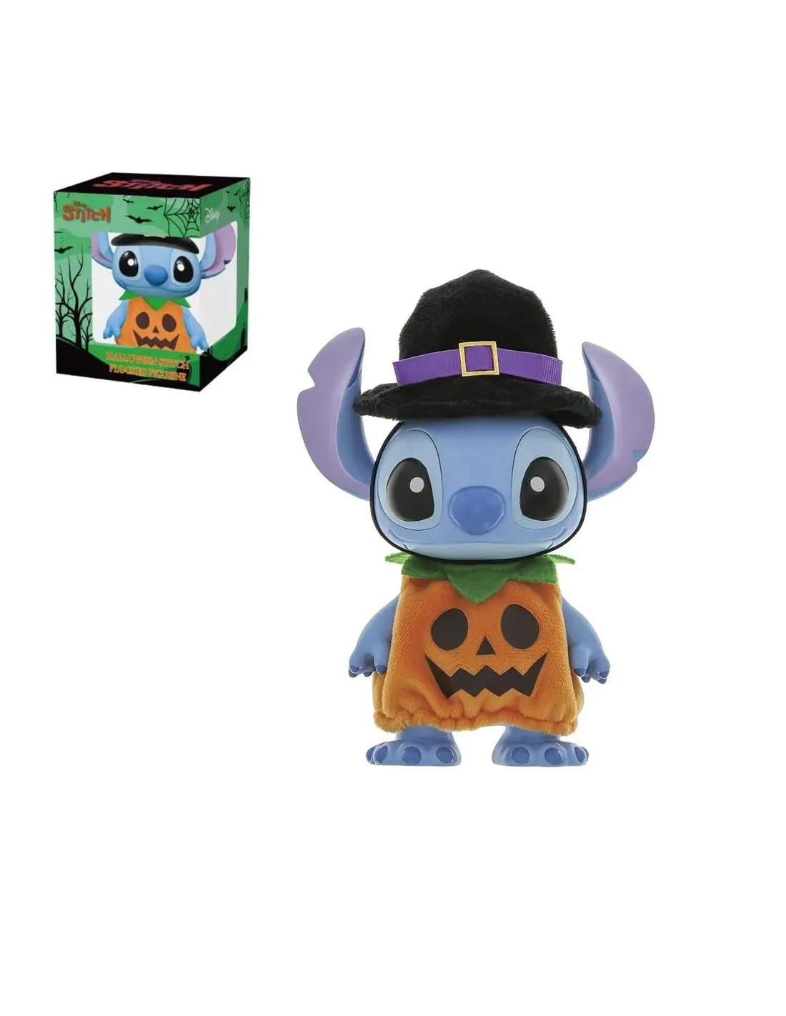Figura Enesco Disney Stitch Halloween CalabazaLa figura Enesco Disney Stitch Halloween Calabaza es una pieza coleccionable que combina la ternura del universo Disney con el espíritu festivo de Halloween. Diseñada para fans de Lilo & Stitch y amantes del coleccionismo temático, esta figura destaca por su diseño adorable y su nivel de detalle artesanal.Diseño temático con encanto DisneyEsta figura muestra a Stitch disfrazado de calabaza, con un traje naranja y un sombrero negro de bruja, capturando a la perfección la esencia lúdica y festiva de Halloween. Es una pieza ideal para decorar estanterías durante la temporada o para mantener en exhibición todo el año.Diseño oficial Disney con licenciaInspirada en Halloween, con acabado temáticoEstilo adorable y reconocible por los fansCalidad de fabricación y detalles cuidadosFabricada por Enesco, esta figura destaca por su excelente nivel de detalle y materiales de calidad, ideales para garantizar su durabilidad y presencia decorativa. Cada trazo refleja la dedicación típica de las figuras de colección oficiales.Materiales resistentes y duraderosDetalles pintados a manoIdeal como regalo o para coleccionistas DisneyUn regalo único para fans y coleccionistasPerfecta para regalar en Halloween, Navidad o cualquier ocasión especial, esta figura de Stitch en calabaza aporta un toque mágico, divertido y temático a cualquier expositor. Complementa a la perfección cualquier colección de productos Disney o decoración estacional.Apta para todas las edades