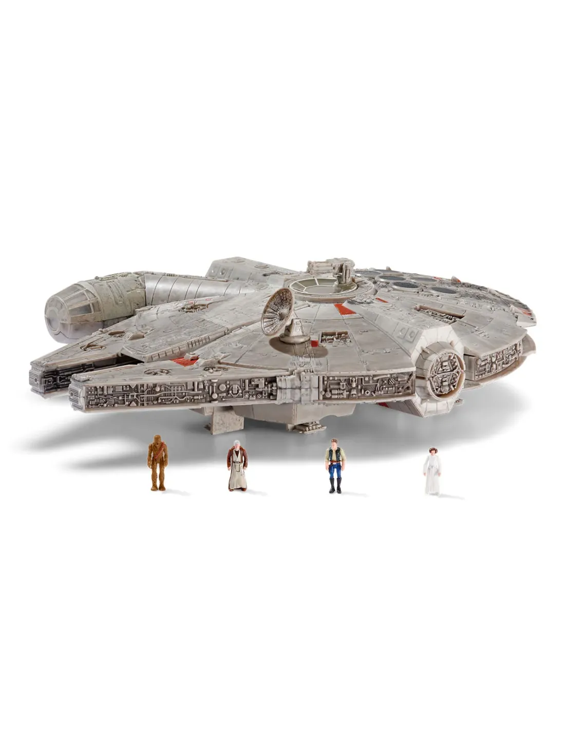 ¡La nave más icónica! Muévela y detectará el movimiento para activar lasluces del motor. Aprieta los botones para luces y sonidos. Abre losdiferentes compartimentos para descubrir todos los detalles. Incluye 4figuras Han Solo, Leia, Chewbacca y Obi-Wan Kenobi. Que la fuerza teacompañe