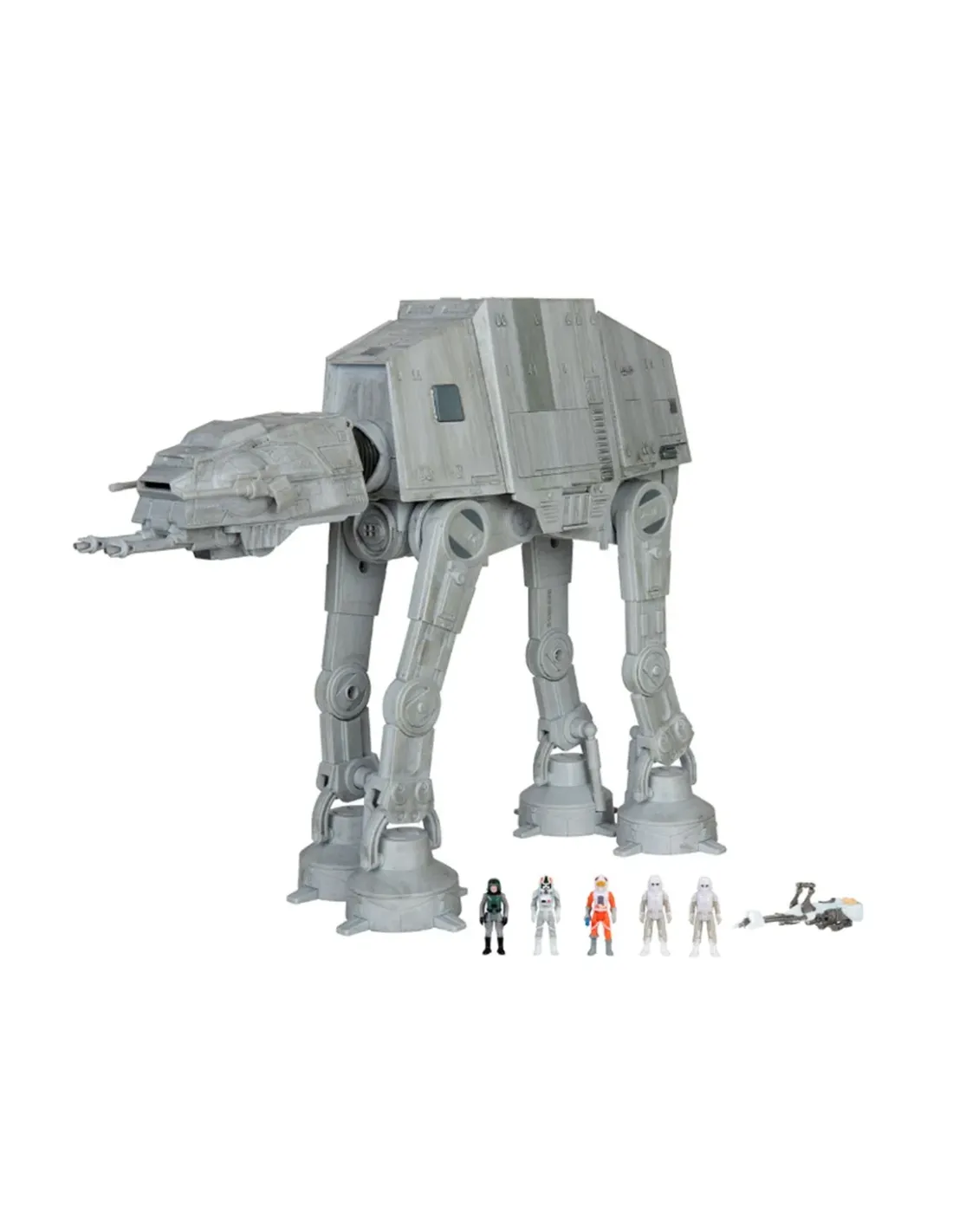 El vehículo terrestre más terrorífico con su gran tamaño y blindaje. 2 cañones blasters. Compartimento para soldados de asalto. Grúa totalmente operática para subir y bajar soldados. Electrónica conluces y sonidos. Incluye moto de nieve y 5 figuras con un Luke Skywalker exclusivo. Altura aproximada de 25 cm.