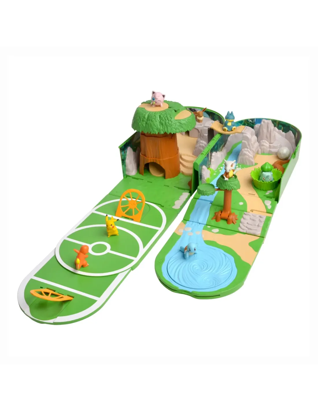 Crea los escenarios de la serie Pokemon con esta fantástica mochila delmundo de Pokemon que podrás llevar a cualquier sitio. ¡Mira cómo setransforma en un mundo Pokemon! Es un playset transformable con todolujo de detalles y con 6 zonas diferentes de juego: área de batalla, un lago,una casa del árbol, área de rocas, un puente, y un árbol. ¡Diversión sin fin!