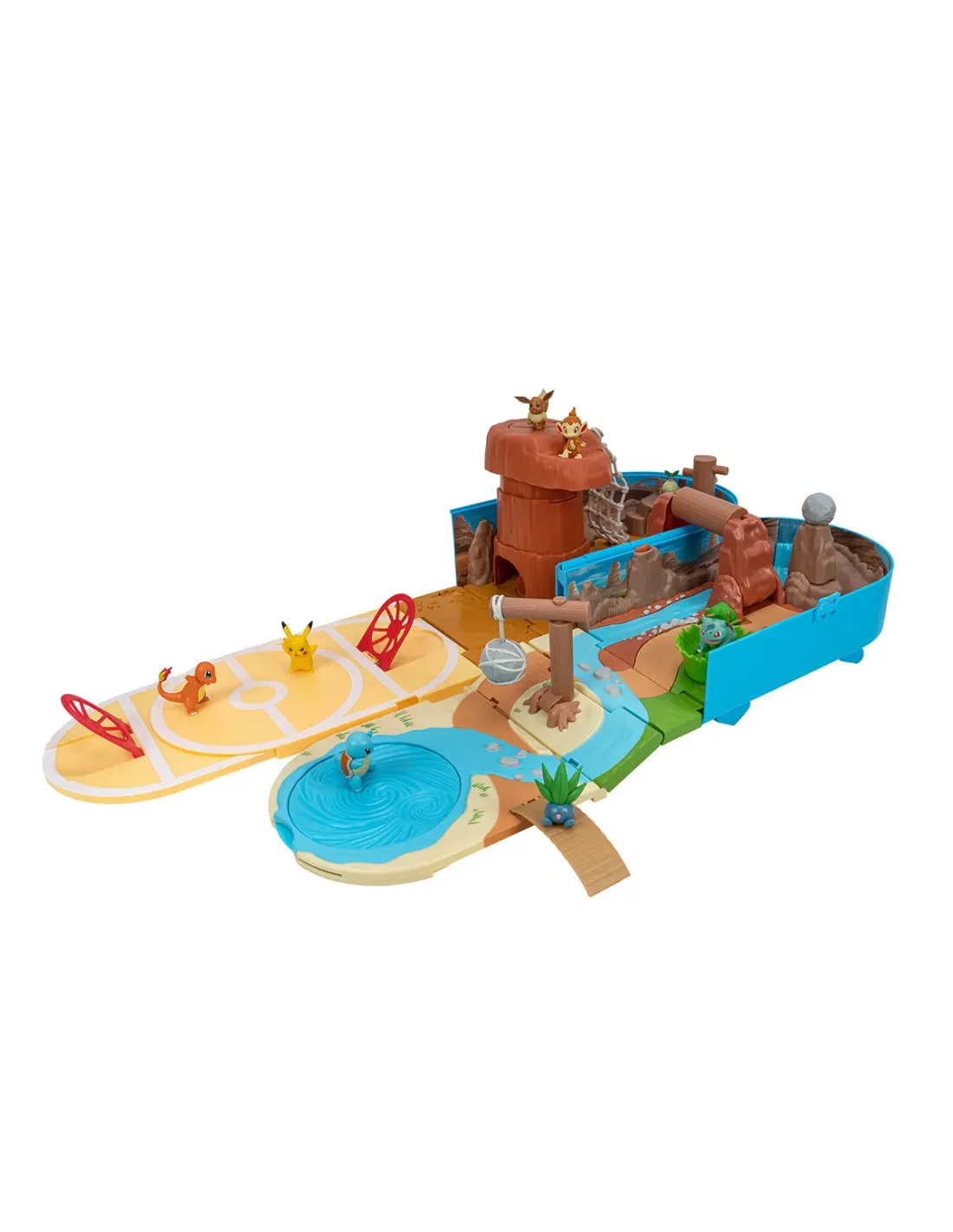Crea los escenarios de la serie Pokémon con este fantástico playset quepodrás llevar a cualquier sitio. ¡Mira cómo se transforma! Es un playsettransformable con todo lujo de detalles y con zonas diferentes de juego:área de batalla, un lago, puente rodante, área de rocas rodantes ydiferentes trampas. ¡Diversión sin fin! Incluye trampas ocultas, pasadizos,rocas rodantes, lanzadores y mucho más. Cierra el playset y conviértelo enuna mochila para llevarlo siempre contigo. Incluye una figura de Pokémon.