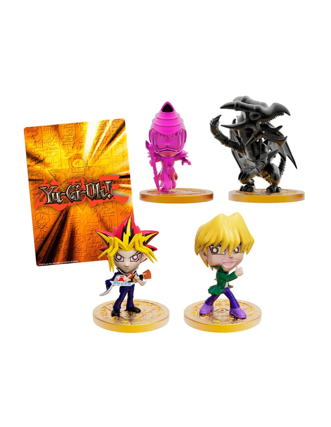 ¿Listo para la batalla? Con este increíble pack tenemos un set perfectopara el combate al incorporar al más conocido duelista Yugi, 3 de lascriaturas mas poderosas y una carta exclusiva Bonus. Incluye 4 figuras de6cm: Yugi, Wheeler, Hechicero de Magia Oscura y Dragón Negro.