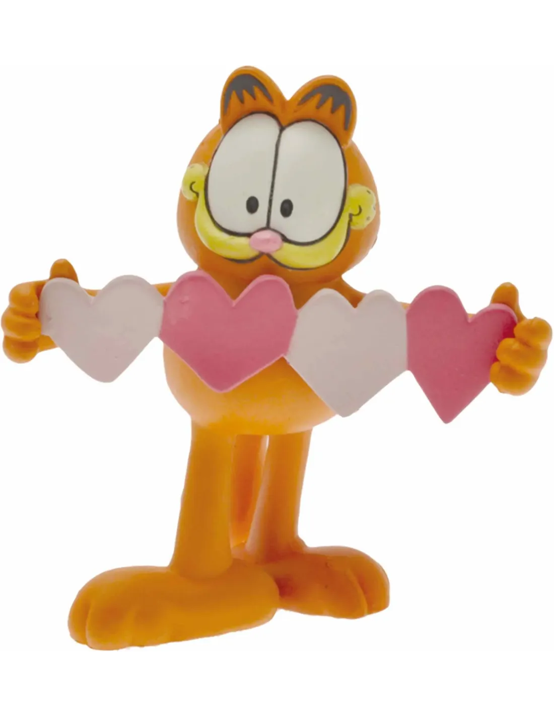 Plastoy presenta esta figura en PVC de 6 cm basado en el gato Garfield conuna guirnalda de corazones. Garfield, nacido en 1978 bajo el lapiz de JimDavis, es uno de los gatos mas emblematicos de los comics, yprobablemente uno de los mas atractivos, a pesar de su mal caracter. Susaficiones: comer, dormir y molestar a su amo Jon y a Odie, el perro de lacasa.