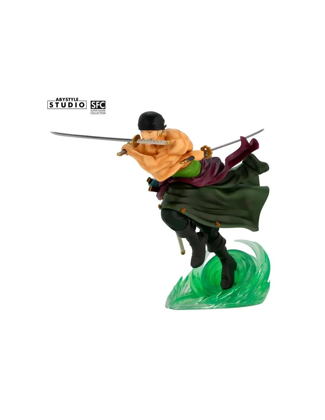 ¡Presentamos a Zoro, el temible espadachín de la Banda del Sombrero de Paja! Con su determinación inquebrantable y su habilidad con la espada sin igual, el Cazador de piratas se abre paso a travésde la gama SFC de ABYstyle Studio... ¡si, por una vez, no se pierde en el camino! En cualquier caso, prepárate para quedar asombrado con su estilo de tres espadas dominando las espadas WadoIchimonji, Sandai Kitetsu y Shusui para derrotar a todos los enemigos en su camino.- Figura de PVC de la gama SFC- Altura: 18 cm- Escala: 1:10