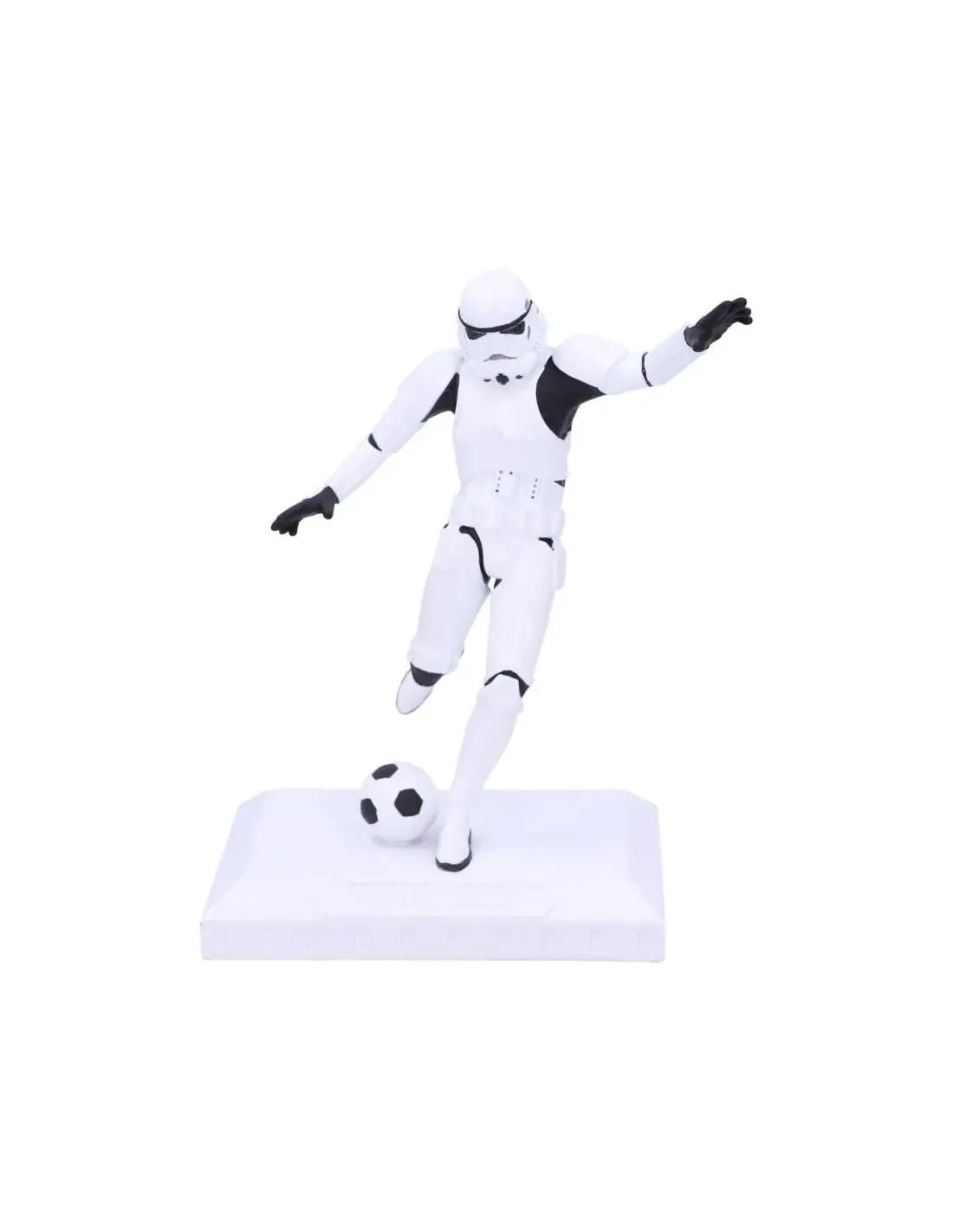 Características de la Figura Stormtrooper Futbolista | Star Wars | Nemesis NowEsta figura de colección de Nemesis Now presenta a un Stormtrooper en versión futbolista, una combinación original que encantará tanto a los seguidores del universo Star Wars como a los amantes del deporte. Diseñada para destacar en cualquier estantería, ofrece un toque de humor y estilo galáctico a tu colección personal o espacio friki.Diseño exclusivo con licencia oficialLa figura cuenta con licencia oficial de Star Wars, garantizando fidelidad en los detalles y calidad en su acabado. El icónico soldado imperial se presenta en una postura deportiva, con uniforme de fútbol y balón incluido, reinterpretando el clásico diseño del Stormtrooper de forma divertida y sorprendente.Producto con licencia oficial Star WarsDiseño exclusivo: Stormtrooper con uniforme de fútbolIdeal para coleccionistas y fans de la sagaFabricación en resina y pintado a manoElaborada en resina de alta calidad y con un cuidadoso acabado pintado a mano, cada pieza presenta pequeñas variaciones que la hacen única. Su peso y textura transmiten robustez, convirtiéndola en una figura decorativa resistente y duradera.Material: ResinaAcabado: Pintado a manoAspecto detallado y realistaPerfecta para regalar o coleccionarYa sea para ampliar tu colección de Star Wars o como regalo original para fans, esta figura destaca por su originalidad y calidad. Aporta un toque divertido y geek a cualquier espacio: oficina, estantería, sala de juegos o vitrina de coleccionista.Regalo ideal para seguidores de Star WarsDiseño llamativo y decorativoPresentación cuidada, lista para regalarOtras especificacionesMarca: Nemesis NowFranquicia: Star WarsModelo: Stormtrooper Futbolista