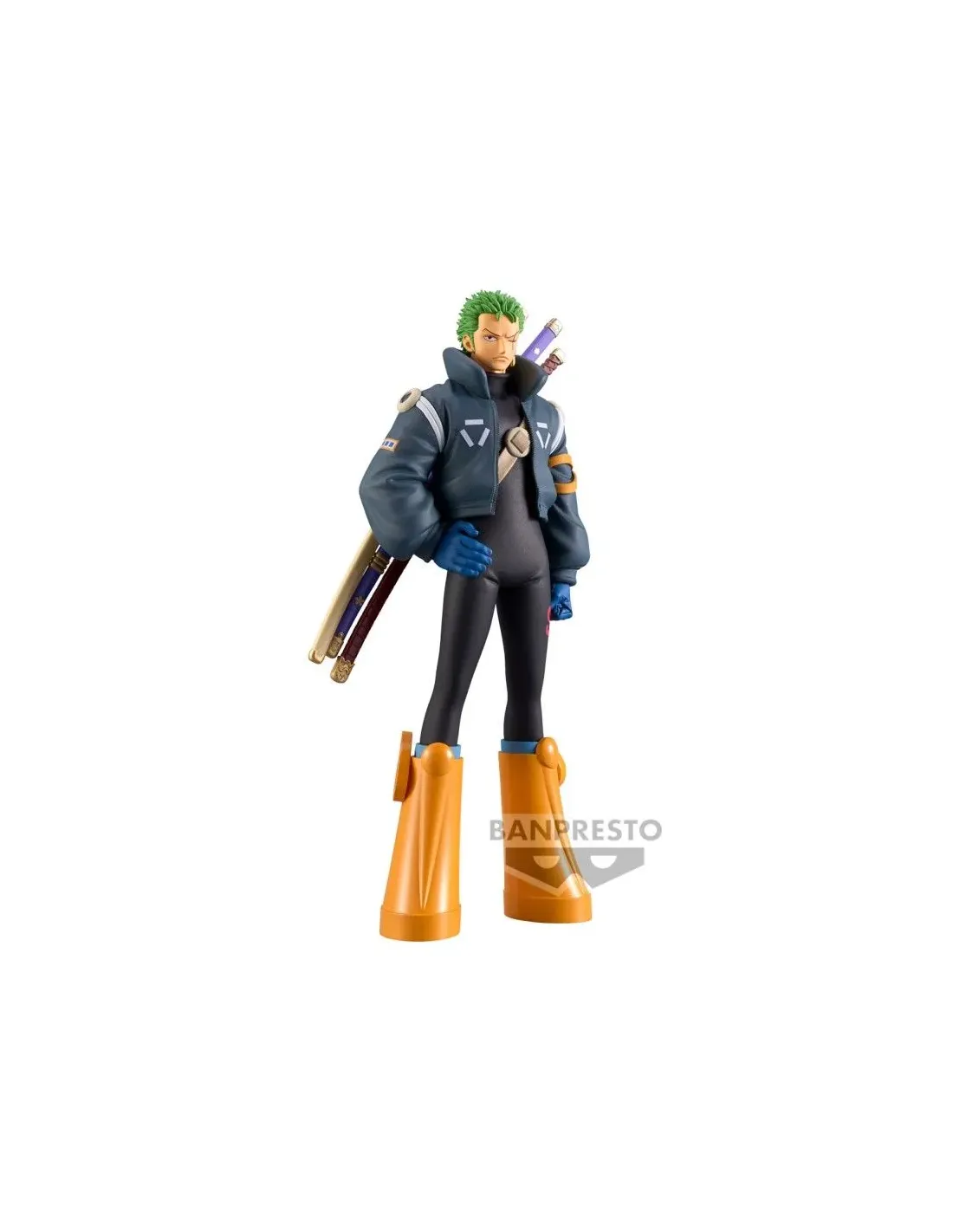 ¡Añade la figura de Roronoa Zoro a tu colección de figuras de One Piece!Banpresto presenta la figura de Roronoa Zoro del popular manga y anime One Piece Dxf The Grandline Series Egghead. Esta figura está hecha en PVC mide unos 17 cm de alto e incluye una basesoporte especial para exposición.