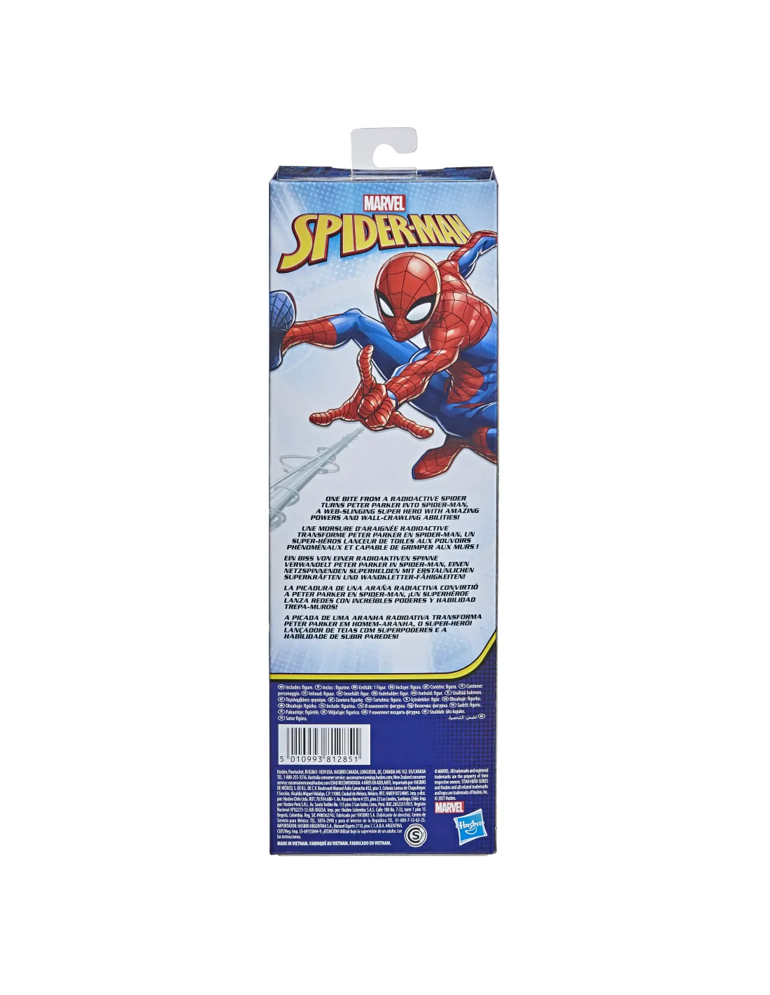 ¡Descubre la nueva figura Titan de Spiderman! Consigue la figura de 30cm de tu super heroe favorito. FIGURA DE 30 CM DE SPIDER-MAN. Imagina a Peter Parker vestido como el simpáticoSpider-Man de barrio con esta figura de 30 cm de Spider-Man, inspirada en el diseño clásico del personaje de los cómics de Marvel. FIGURA DE ACCIÓN DE SUPERHÉROE QUE HABLA. Conecta ellanzador de proyectil (no incluido. Se venden por separado con las figuras Titan Hero Blast) al puerto de la espalda de la figura de acción de Spider-Man para activar los sonidos y las frasesinspirados en la película de Spider-Man y lanzar proyectiles. DISEÑO INSPIRADO EN LA PELÍCULA DE SPIDER-MAN. Los fans pueden imaginarse las aventuras de Spidey, lanzando telarañas ytrepando paredes, con esta figura de Spider-Man, inspirada en el personaje de los cómics de Marvel. COMPATIBLE CON EL LANZADOR TITAN HERO BLAST GEAR (no incluido, se venden porseparado con las figuras Titan Hero Blast Gear). Se conecta a las figuras Titan Hero Series y Titan Hero Blast Gear (se venden por separado) para escuchar efectos sonoros. COLECCIONA OTROSJUGUETES DEL SUPERHÉROE ARÁCNIDO. ¡Colecciona otras figuras de Spider-Man y prepárate para imaginar al lanzatelarañas que se va balanceando en pura acción! Los productos adicionalesse venden por separado. Sujeto a disponibilidad.