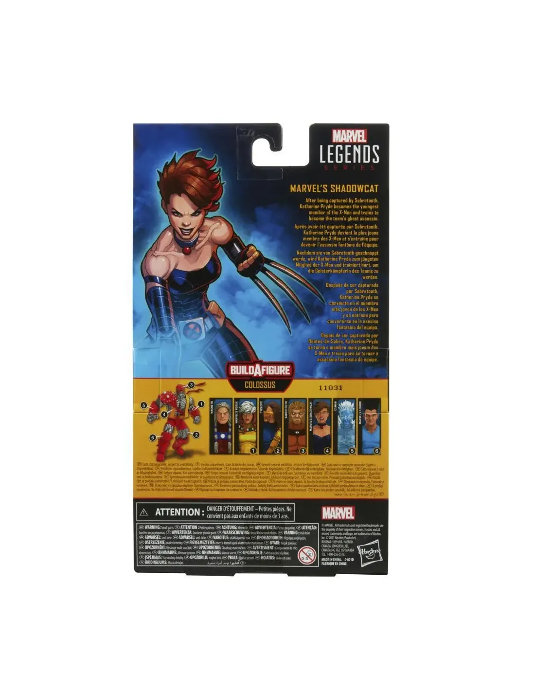 Hasbro Fans presenta dentro de la colecciÛn Marvel Legends X-Men lafigura de Shadowcat (Gata Sombra) en la versiÛn de la Era de Apocalipsis.Se trata de una figura articulada de 15 cm hecha en PVC. Incluye las piezaspara montar la figura de Colossus, asÌ como una cabeza y manosintercambiables y garras.