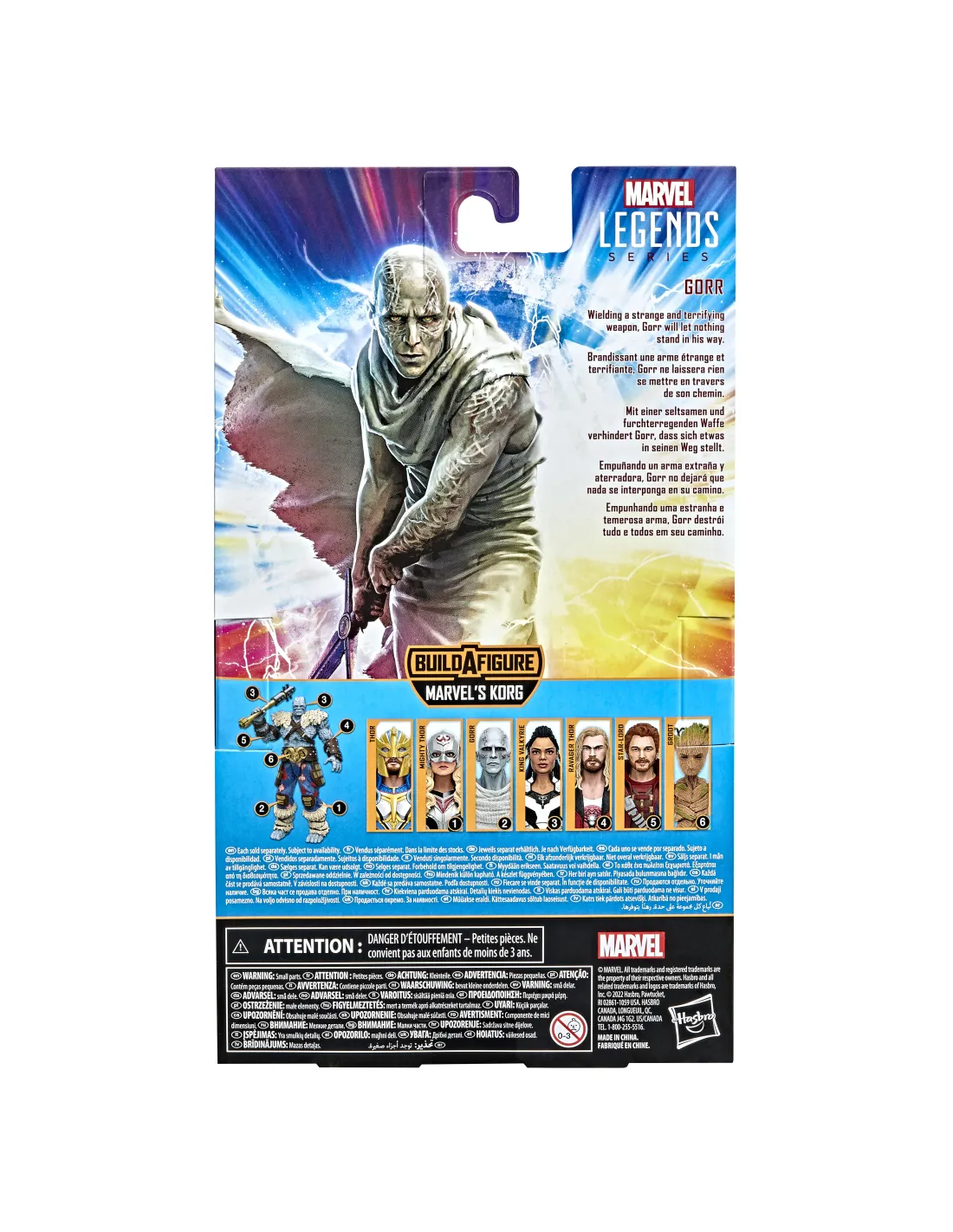 Hasbro Fans presenta esta figura de Gorr dentro de la colección MarvelLegends basado en su aparición en Thor: Love and Thunder. Empuñando unapoderosa y aterradora arma, Gorr no dejará que nada se interponga en sucamino. Se incluyen 3x accesorios y una parte de Korg para el figure building.