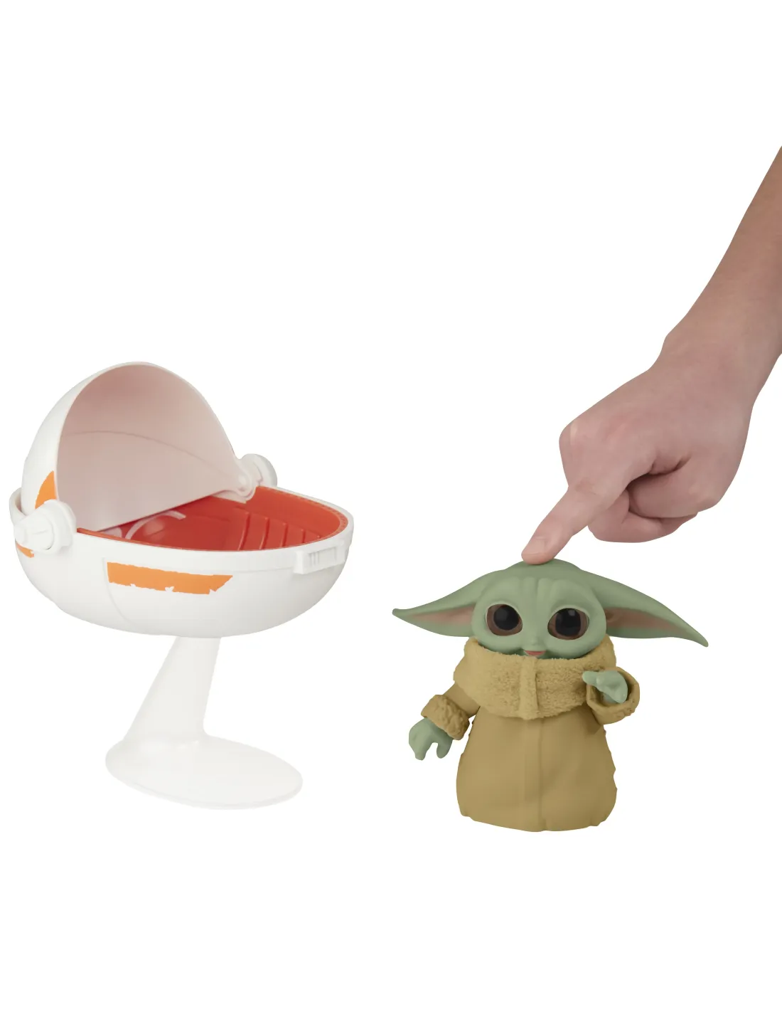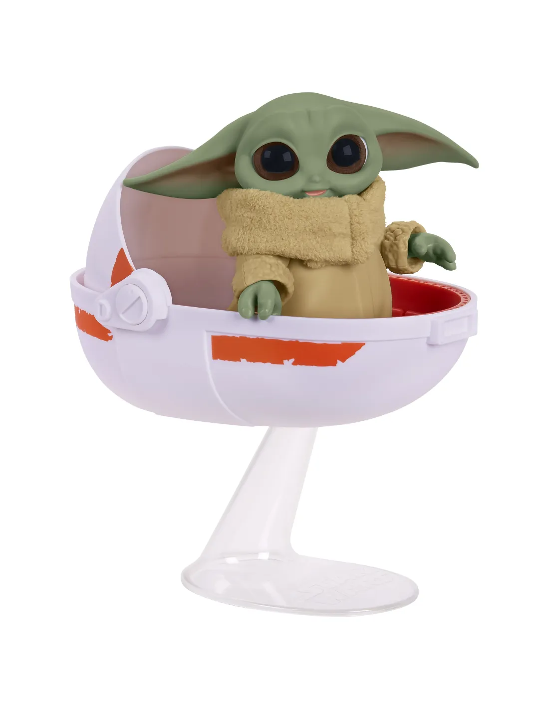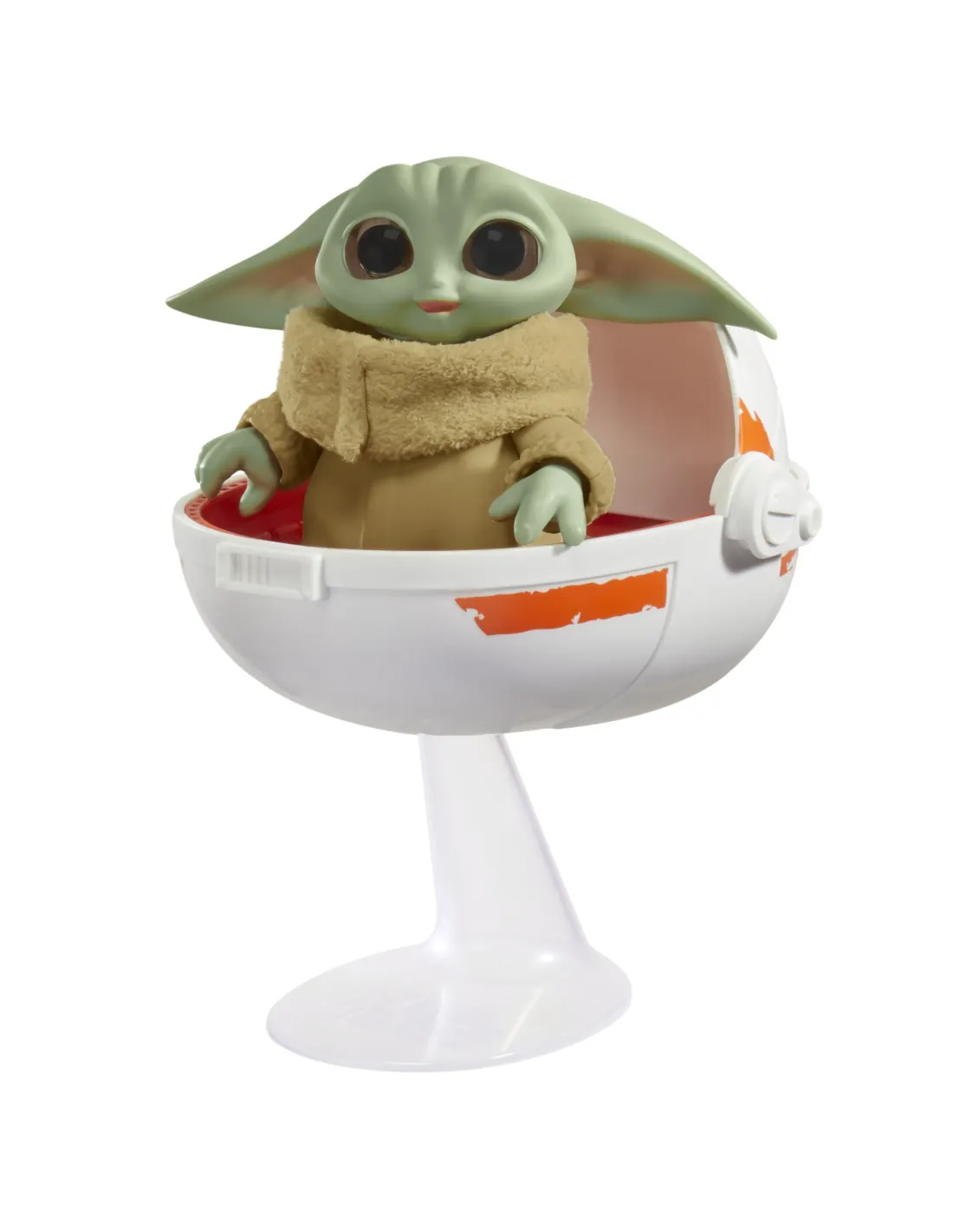 Lleva a casa al personaje más buscado de la galaxia con la figura interactiva Wild Ridin' Grogu de Star Wars y su coche flotante. Este juguete de Star Wars cuenta con diseño y decorado inspirados en la serie The Mandalorian, de Disney+. Los niños y niñas a partir de 4 años podrán imaginar que emprenden aventuras galácticas o recrean sus momentos favoritos de Star Wars con Grogu (El Niño), afectuosamente conocido como "Bebé Yoda". Toca la cabeza de Grogu, ponlo boca abajo, acuéstalo o colócalo en su coche flotante para activar más de 25 combinaciones de sonidos y movimientos. Escucha a Grogu reír, mira cómo mueve la cabeza y activa divertidos sonidos de vuelo cuando Grogu se mueve con su coche flotante. Este juguete animatrónico incluye un collar de material premium, cabeza y orejas blandas, coche, cobertura y base del coche flotante.