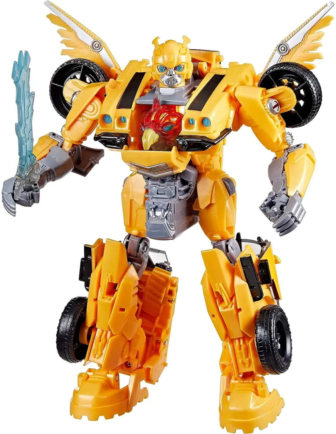 Bumblebee, el valiente explorador Autobot, surca los cielos en su nuevo modo águila La figura Bumblebee modo bestia cuenta con 3 modos de conversión: ¡robot, vehículo y bestia! El juguete está basado en el personaje de Bumblebee de la nueva película de Transformers: El Despertar de las Bestias La guerra en la Tierra ya no es entre los heroicos Autobots y los malvados DecepticonsTransformers: El despertar de las bestias presenta nuevas y misteriosas facciones: los Maximals, los Predacons y los Terrorcons, en una épica aventura global de los años 90. Transformers y todos los personajes relacionados son marcas registradas de Hasbro. © 2022 Paramount Pictures Corporation.Todos los derechos reservados. Con licencia de Hasbro CHEVROLET, el logotipo de BOWTIE, CORVETTE y el logotipo de CORVETTE y CAMARO, son marcas registradas de General Motors, LLC.