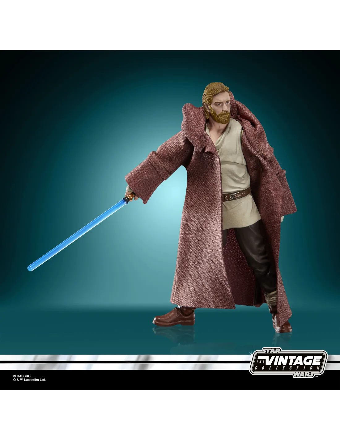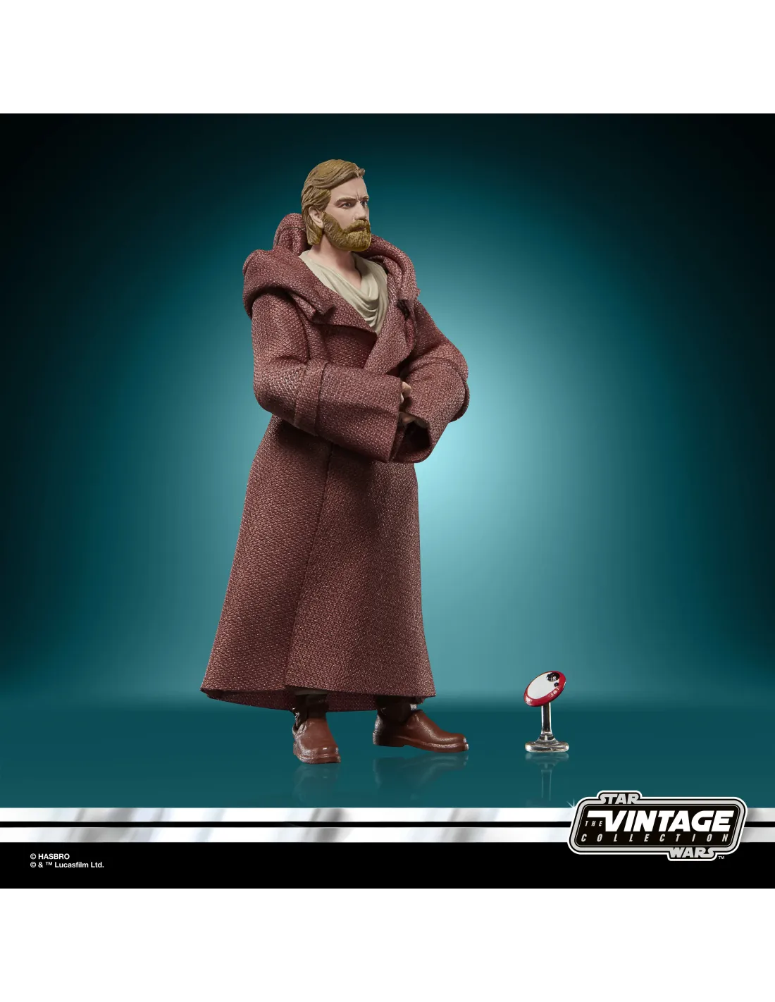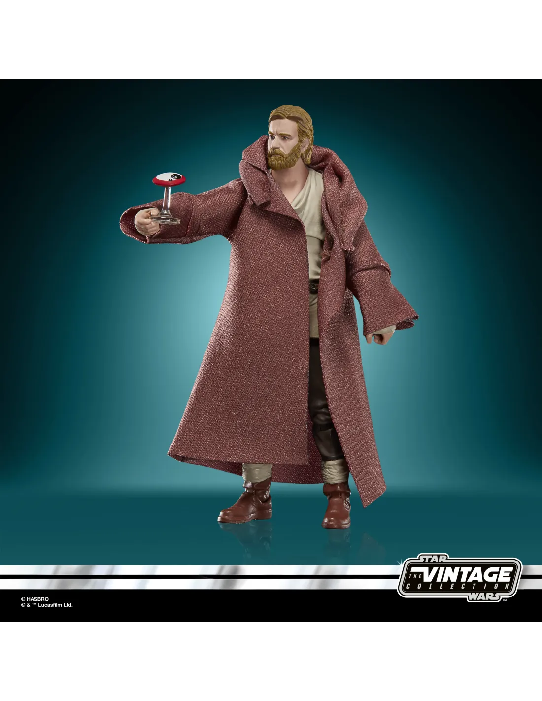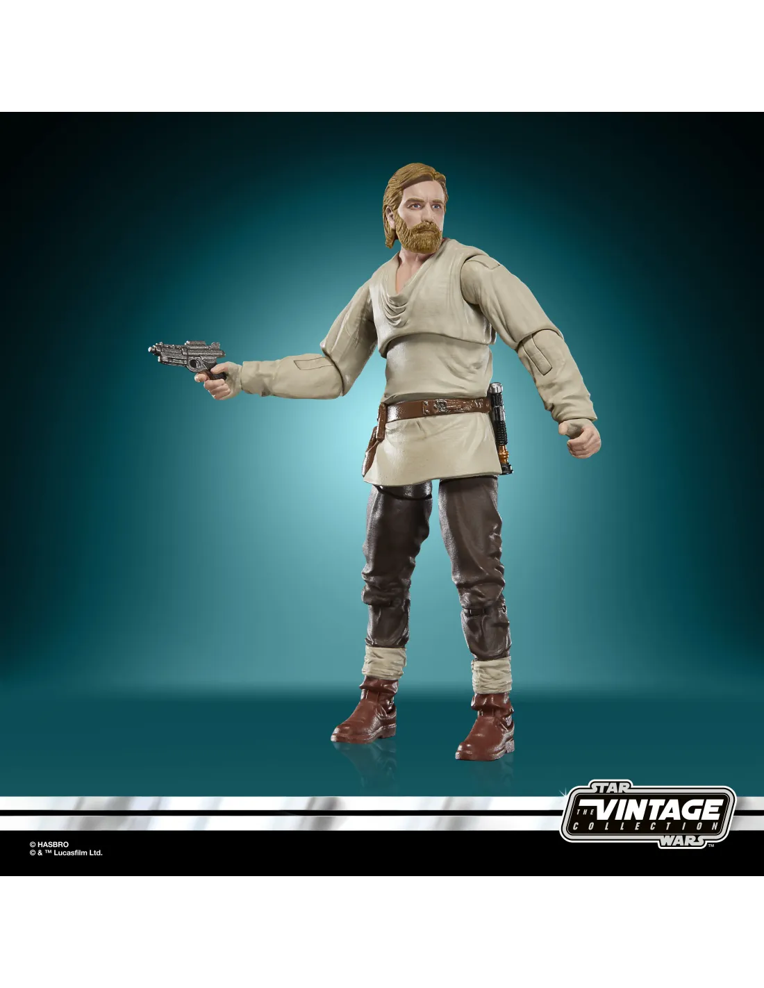 Hasbro presenta dentro de su colecciÛn Vintage Collection la figura de ObiWan Kenobi tal y como aparece en la serie del mismo nombre. Se trata deuna figura articulada hecha en PVC que mide 9,5 cm e incluye un armablaster y un sable luz apagado y uno encendido, y dos Lolas.