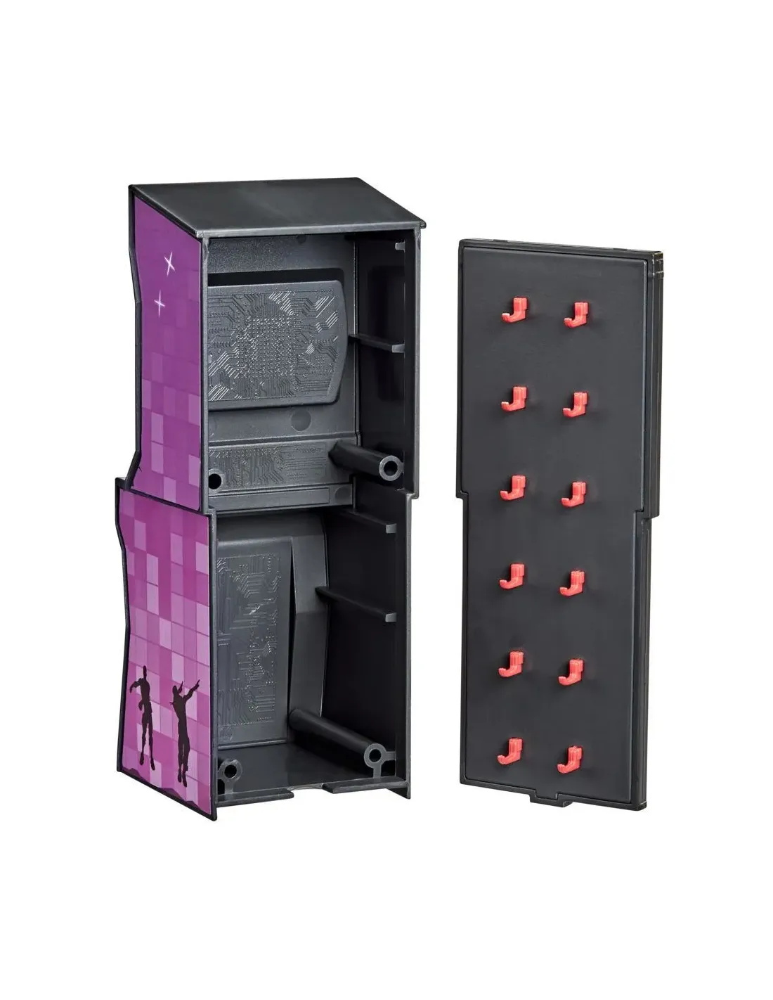 Hasbro Fans presenta esta figura con la apariencia de maquina recreativaarcade de el popular videojuego Fortnite. Dentro de la "caja" vienen armas ycomplementos qu podras guardar tanto dentro de la caja como exponerlosen la parte de atras de la m·quina. Este modelo es de color rosa.
