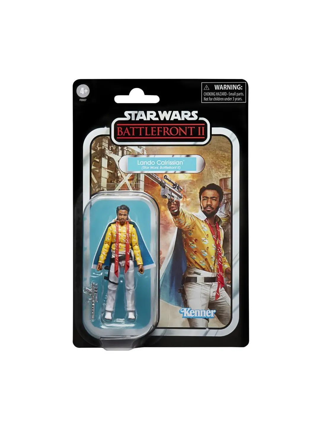 Hasbro presenta dentro de su colecciÛn Vintage Collection Gaming Greatsla figura de Lando Calrissian basado en su aspecto en Battlefront II. Se tratade una figura articulada hecha en PVC que mide 9,5 cm e incluye su pistolablaster.