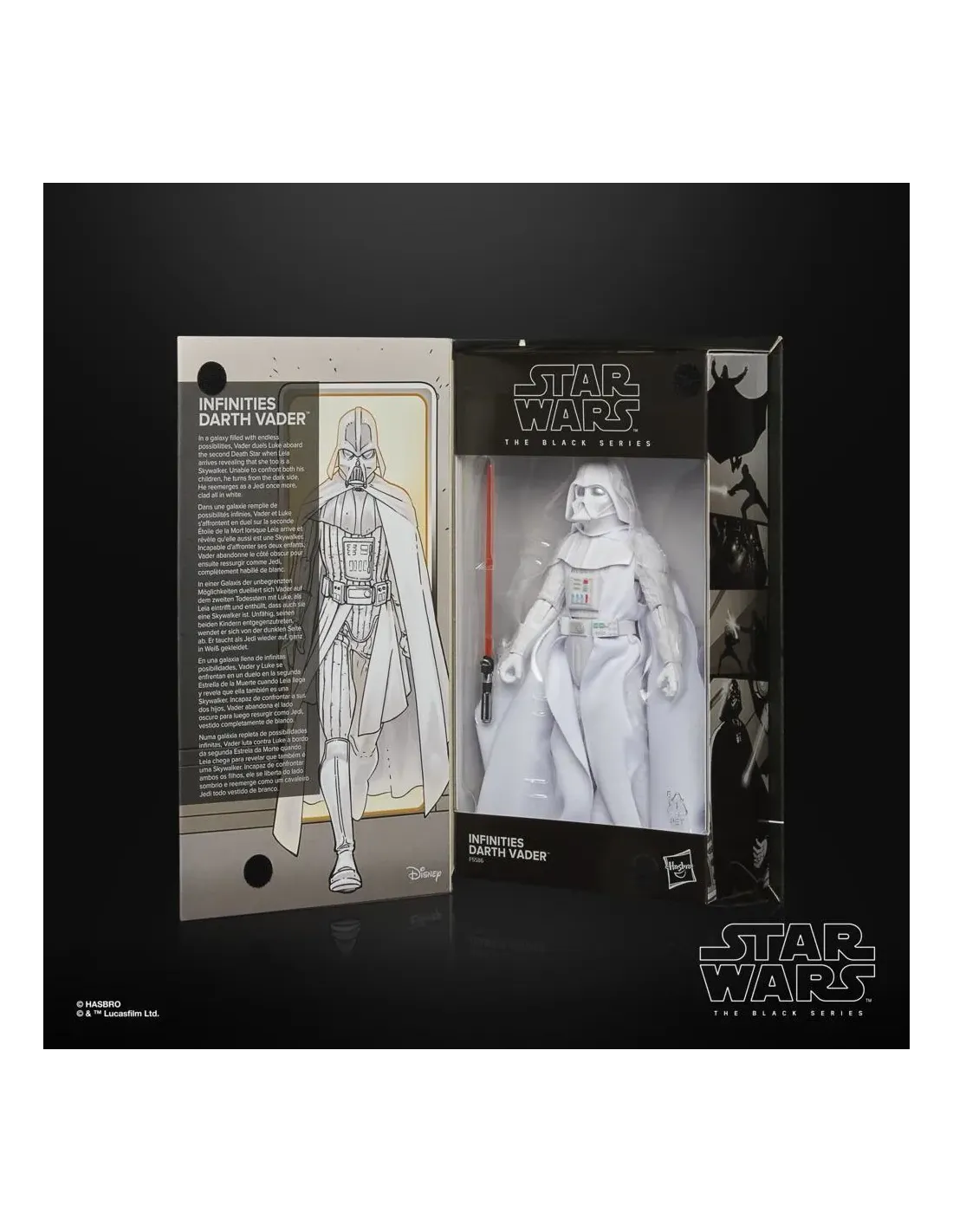 Hasbro presenta dentro de su coleccion Black Series, la figura de DarthVader totalmente blanco basandose en la apariencia en Star Wars Infinities:Return of the Jedi. Vader se enfrenta a Luke a bordo de la segunda Estrellade la Muerte cuando Leia llega y revela que ella tambiÈn es Skywalker.Incapaz de enfrentarse a sus dos hijos, se aparta del lado oscuro.Reaparece como un Jedi una vez m·s, vestido todo de blanco. Se trata deuna figura articulada de unos 15 cm hecha en PVC. Incluye sable l·ser.