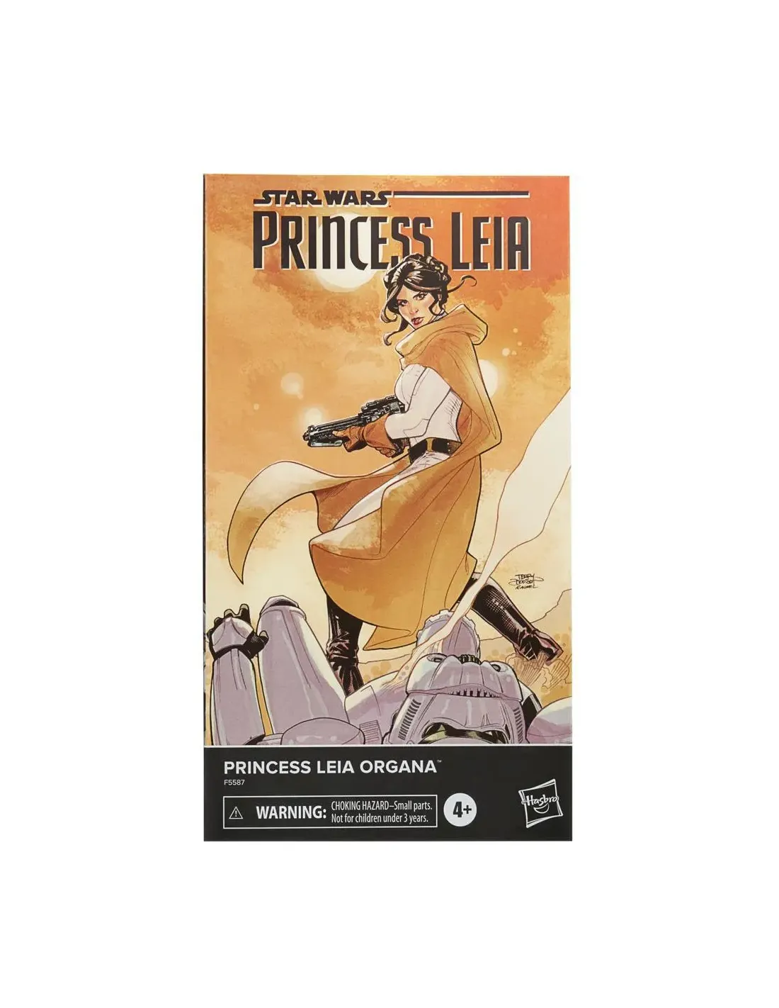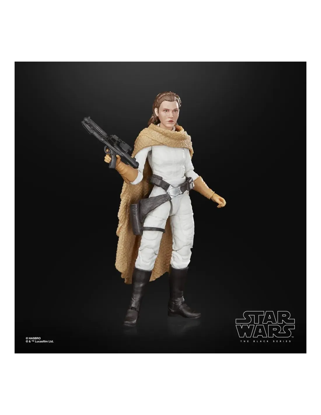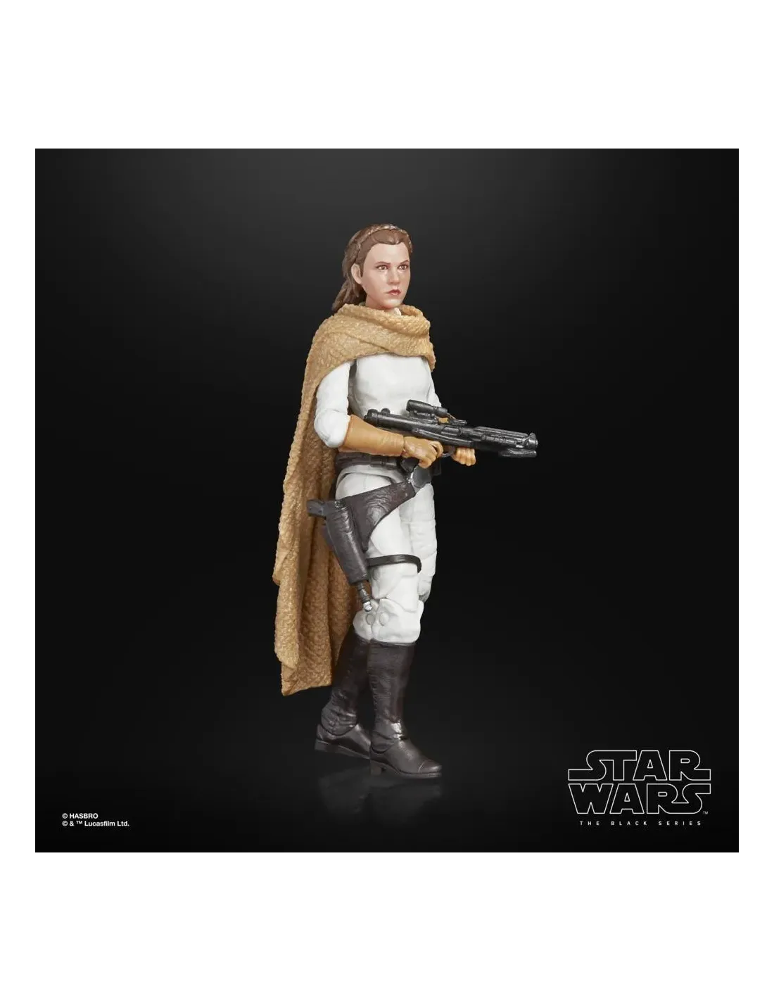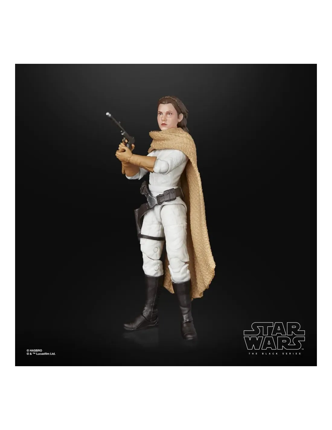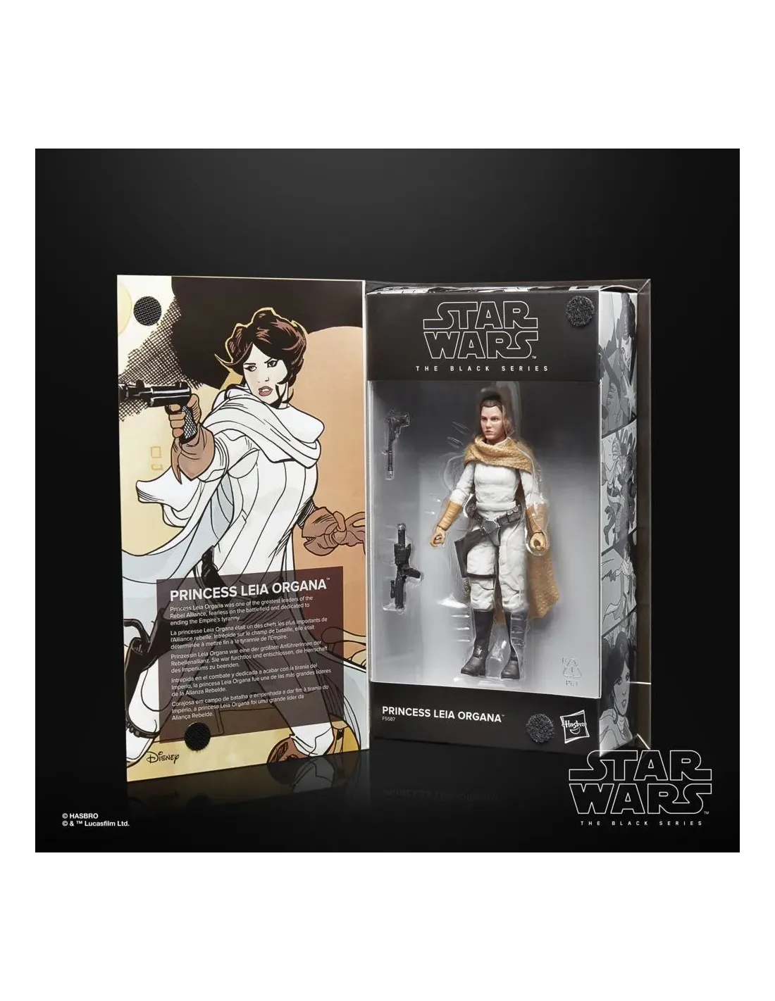 Hasbro presenta dentro de su colecciÛn Black Series, la figura de laprincesa Leia Organa tal y como aparecia en los comics. Tras ladestrucciÛn de Alderaan, su hogar, Leia intenta buscar y proteger a lossobrevivientes regados por toda la galaxia con la ayuda del piloto de laRebeliÛn Evaan Verlaine y R2-D2. Se trata de una figura articulada de unos15 cm hecha en PVC. Incluye dos blasters.