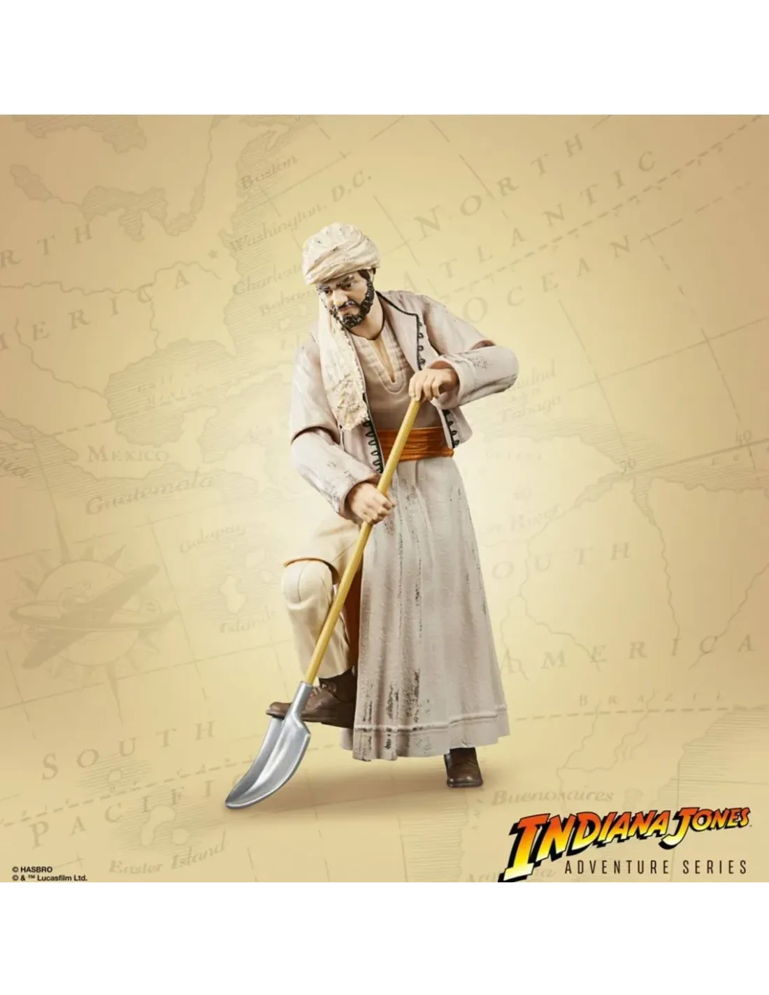 Hasbro presenta, dentro de su línea de productos dedicada a la película 'Indiana Jones y el templo maldito', esta figura de Sallah disfrazado, compañero defatigas de Indi. Esta figura de 15 cms. está diseñada para parecerse al personaje de Sallah de la película, cuenta con detalles premium y múltiples puntos dearticulación e incluye 2 accesorios (una cuerda y una pala) y una pieza extra para construir el Arca de la Alianza.