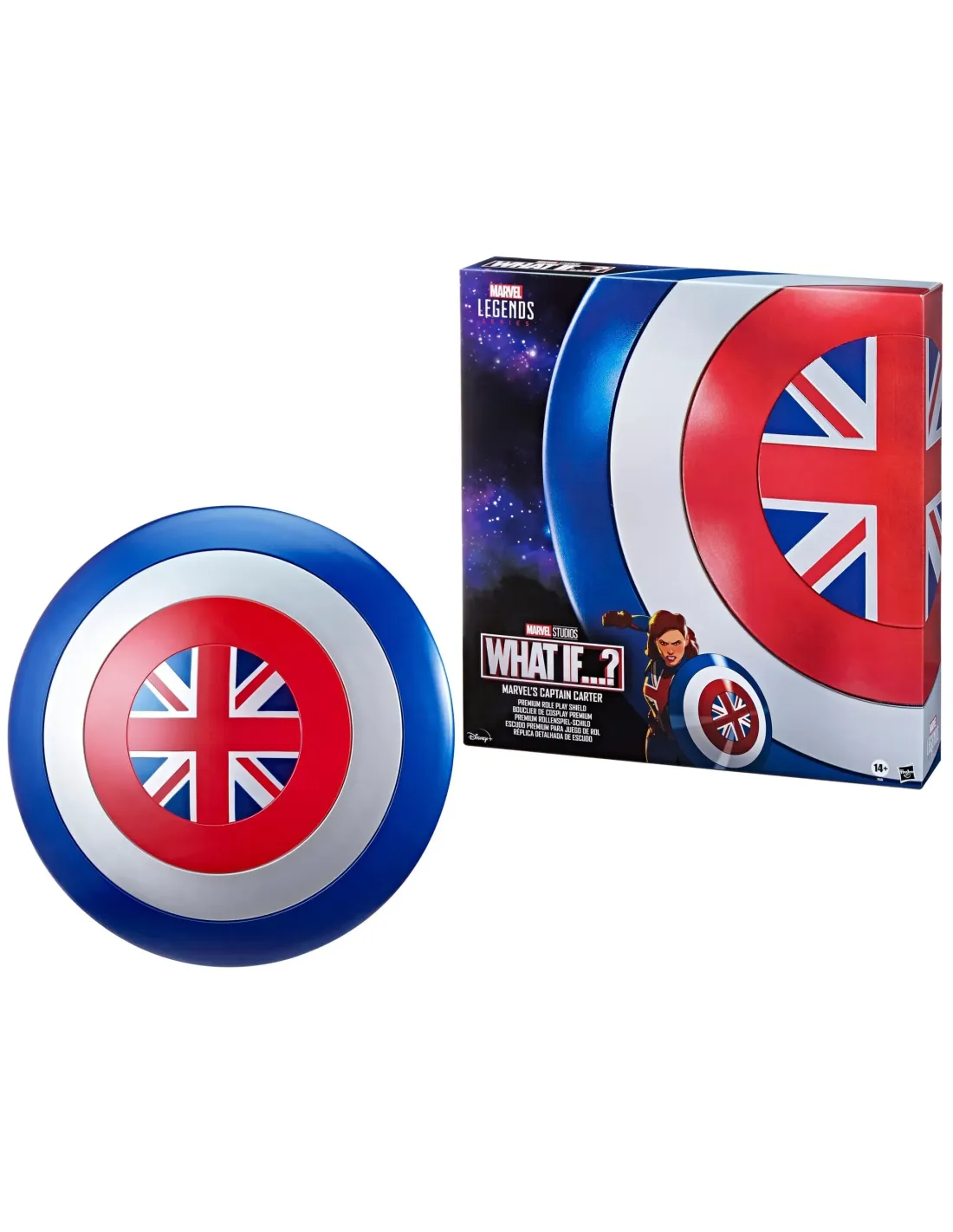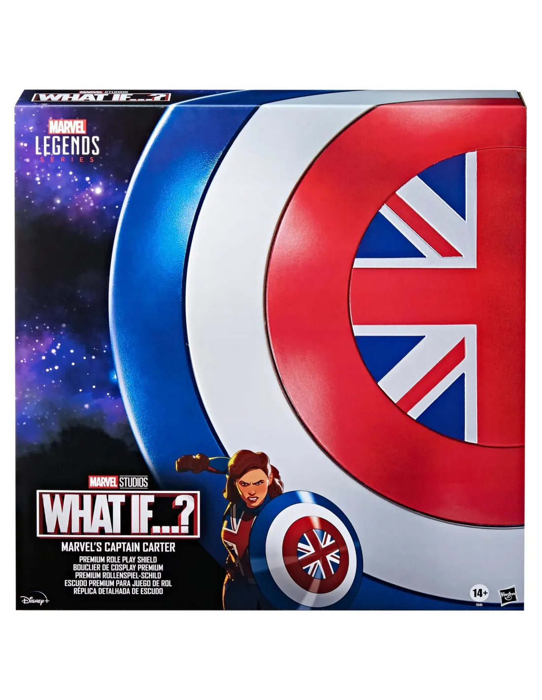 En este universo, Steve Rogers es marginado durante el Proyecto Renacimiento, lo que permite que Peggy Carter reciba el Suero del Supersoldado y se convierta en la Capitana Carter: la primeraSupersoldado del mundo. Marvel Legends presenta con orgullo esta reproducción a escala 1:1 del escudo de la Capitana Carter, tal y como aparece en el Universo Cinematográfico de Marvel. Con unmodelado y detalles que reproducen de forma precisa su apariencia en la serie, este escudo para juego de rol de la línea Marvel Legends no puede faltar en tu colección de artículos Marvel.DISEÑO INSPIRADO EN LA SERIE: Con decoración y detalles premium, este escudo está diseñado para reproducir la apariencia del poderoso escudo de vibranio que utiliza la Capitana Carter en ¿Quépasaría si...? de Marvel StudiosCORREAS AJUSTABLES: Este escudo para juego de rol cuenta con correas ajustables que te permitirán estar listo para la batallaEscala: 60 cmA partir de 14 años.© 2023 Hasbro. Todos los derechos reservados. © 2023 MARVEL.