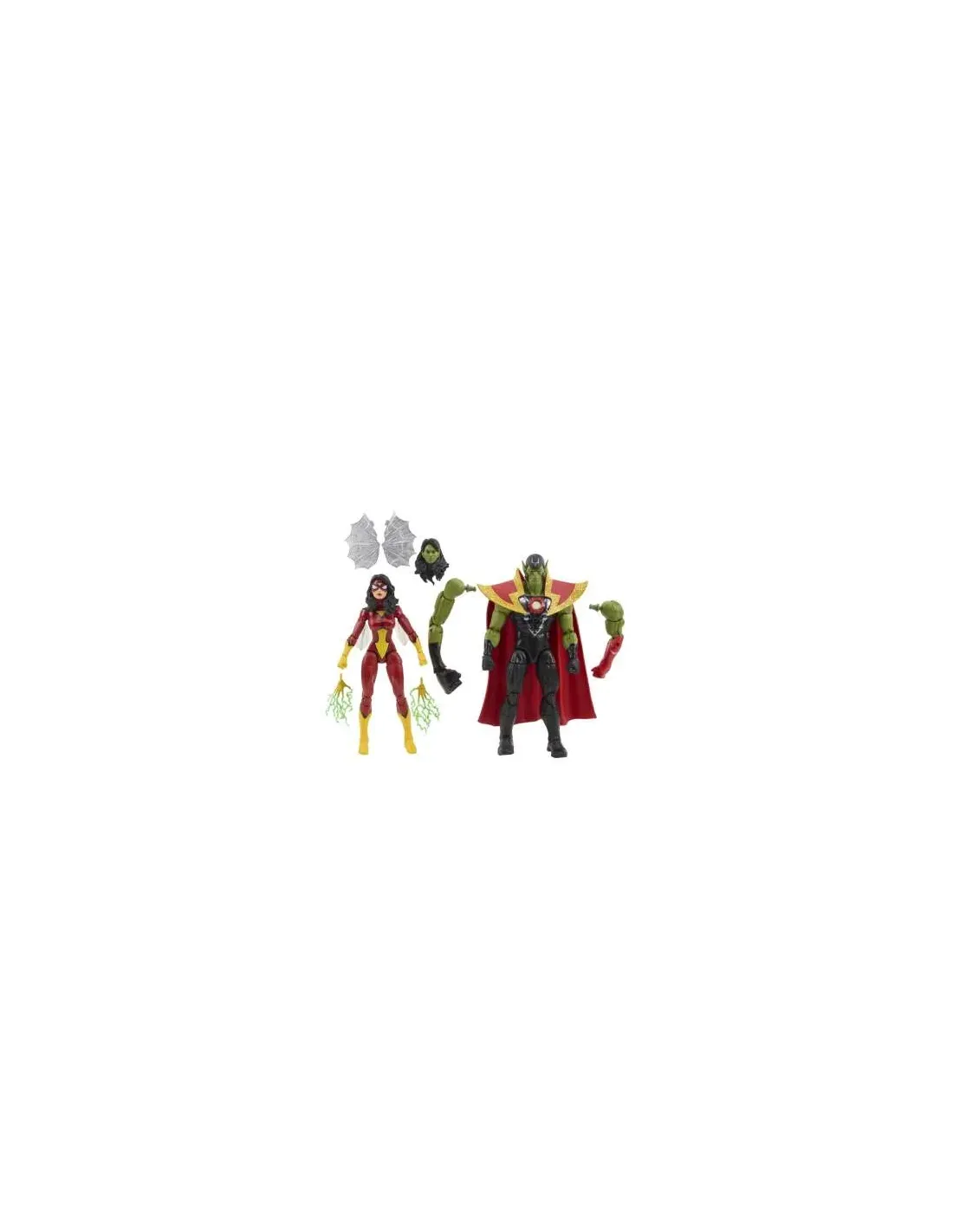 ¡Trae la emoción y la maravilla del Universo Marvel a tu colección con las figuras de Skrull Queen, Super-Skrull y otras figuras de acción de la línea Marvel Legends Series de Hasbro! (Los productos adicionales se venden por separado. Sujeto a disponibilidad). Usando sus poderes para cambiar de forma, la reina Veranke de los Skrulls asume la identidad de Spiderwoman para infiltrarse entre los Vengadores y dar inicio a una invasión secreta de la Tierra sembrando el caos con sus infiltradores Súper Skrull. Las figuras coleccionables de este set del 60.º aniversario de Vengadores, de Marvel Legends, miden 15 cm, están diseñadas para parecerse a los personajes Skrull Queen and Super-Skrull de los cómics de Marvel Secret Invasion y cuentan con detalles premium y múltiples puntos de articulación. Las figuras vienen con 9 accesorios, incluyendo manos alternas para cada figura, cabeza alterna de Spiderwoman para la reina Skrull y alas alternas.