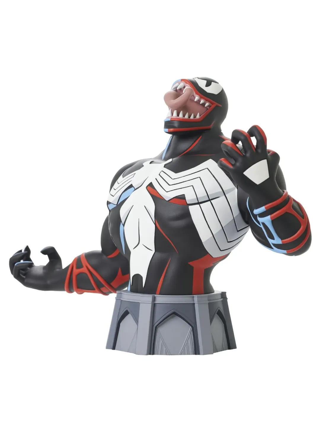 Diamond presenta este mini busto de Venom, inspirado en el clásico de los 90 'Spider-Man: The animated series', captando su aspecto animado y listo para darse un festín con los sesos de Spidey.Esta miniatura mide aproximadamente 15 centímetros y se trata de una edición limitada a 3000 unidades. Viene empaquetada en una caja a todo color e incluye certificado de autenticidad numerado.