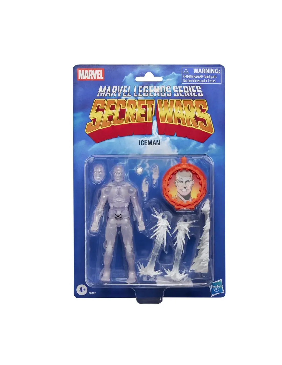Características de la Figura Hasbro Marvel Legends Series Secret Wars IcemanLa figura articulada de **Iceman Secret Wars** de la línea **Marvel Legends Series** recupera uno de los diseños más icónicos de los cómics ochenteros de Marvel. Inspirada en el evento "Secret Wars", esta versión de Bobby Drake se presenta como un homenaje a los fans clásicos y a las nuevas generaciones de coleccionistas. Con acabado translúcido, accesorios personalizables y un escudo lenticular exclusivo, esta figura combina **nostalgia y nivel de detalle moderno** en una pieza imprescindible para cualquier colección.Diseño translúcido con acabado efecto hieloEl esculpido captura a la perfección la esencia del personaje, con una apariencia que evoca hielo puro. Su cuerpo translúcido refleja la luz con un efecto perlado, destacando la musculatura y el gesto contenido de Iceman justo antes del ataque. El logo de los X-Men aparece moldeado en relieve en el torso, manteniendo la transparencia y reforzando su identidad mutante.Material translúcido con acabado efecto hieloDetalle anatómico preciso y emblema X-Men en relieveCabeza adicional para cambio de expresiónArticulación y accesorios dinámicosGracias a su estructura interna articulada, la figura permite adoptar **posturas de acción y exhibición realistas** sin comprometer la estabilidad. Incluye accesorios que refuerzan la narrativa visual, como efectos de hielo para las manos y una base tipo ice slide que simula su clásico desplazamiento sobre hielo. Un detalle extra es la bola de nieve, un guiño al carácter humorístico de Bobby Drake.Altura aproximada de 15 cm (escala 1:12)Base "ice slide" incluida para posado dinámicoEfectos de hielo removibles y bola de nieve como extraEscudo lenticular y homenaje a Secret WarsEl icónico **Secret Shield** completa el tributo al crossover original. Esta pieza alterna entre el rostro de Bobby y su versión congelada gracias a su lámina lenticular, evocando los accesorios clásicos de las figuras ochenteras. Un elemento que no solo aporta valor nostálgico, sino también un punto de interacción visual que enriquece la exposición.Escudo lenticular con doble imagen: Bobby/IcemanInspirado en el crossover original "Secret Wars"Elemento coleccionable que refuerza el diseño retroPackaging retro para coleccionistasLa figura se presenta en un **blíster de estilo vintage** con el logo de Secret Wars en tonos azul y plata. El diseño del empaque está pensado tanto para exhibición cerrada como para quienes prefieren abrir y montar la figura con todos sus accesorios. La ventana frontal permite una visualización clara y atractiva de la composición completa.Packaging inspirado en los originales de los años 80Presentación con ventana para vista completaIdeal para coleccionistas y exposición directaOtras especificacionesLínea: Marvel Legends SeriesFabricante: HasbroPersonaje: Iceman (Bobby Drake)Altura: 15 cm aprox.Escala: 1:12Incluye: figura, efectos de hielo, base "ice slide", bola de nieve, escudo lenticular, cabeza alternativa
