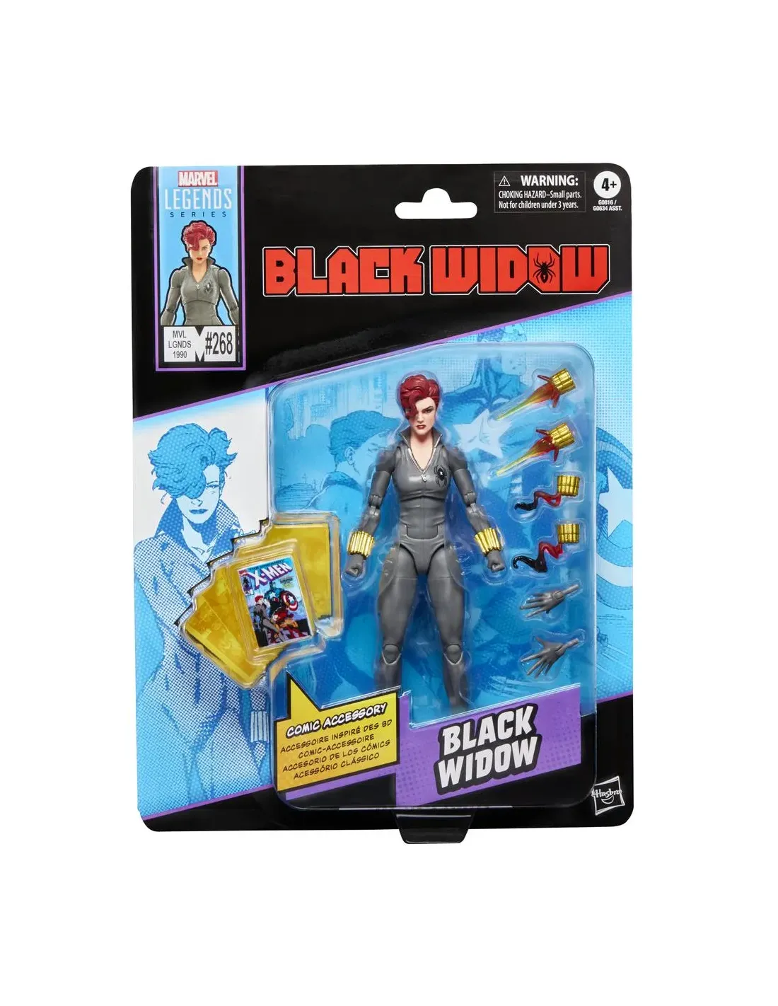 Características de la Figura Hasbro Marvel Legends Series Black WidowLa figura de acción **Black Widow de la línea Marvel Legends** está pensada para los fans de los cómics clásicos de Marvel que buscan una pieza de colección con diseño detallado y articulaciones funcionales. Inspirada en la aparición de Viuda Negra en el cómic *Uncanny X-Men #268 (1990)*, esta figura de 15 cm es ideal tanto para exhibición como para recrear escenas íconicas del universo Marvel.Diseño premium con gran nivel de detalleEsta versión de Viuda Negra presenta un acabado de alta calidad y una representación fiel al personaje de los cómics clásicos. Cada elemento de su atuendo ha sido cuidadosamente esculpido para reflejar su estilo original en los Vengadores y en Uncanny X-Men.Altura aproximada: 15 cm (escala 1:12)Articulaciones en cabeza, manos y piernas para mayor posabilidadDiseño basado en el cómic Uncanny X-Men #268 (1990)Accesorios intercambiables y extras coleccionablesIncluye 7 accesorios que permiten variar poses y estilos de exhibición. Entre ellos se encuentran manos alternativas y efectos de combate que aportan dinamismo a cualquier colección.2 manos alternativas intercambiables2 guanteletes con efecto de combate2 guanteletes con efecto de humoMini cómic de plástico con portada del Uncanny X-Men #268Ideal para coleccionistas y fans de MarvelLas figuras de la línea Marvel Legends destacan por su calidad y fidelidad visual. Esta edición de Black Widow es perfecta para recrear escenas o complementar vitrinas temáticas de los Vengadores o los X-Men.Producto licenciado por Marvel y HasbroIncluye figura + 7 accesoriosEdad recomendada: a partir de 4 añosSeguridad y advertenciasEste producto contiene piezas pequeñas y está destinado a niños mayores de 4 años. No es apto para menores de 3 años por riesgo de asfixia.Advertencia: peligro de asfixiaUso bajo la supervisión de un adultoOtras especificacionesFabricante: HasbroLínea: Marvel Legends SeriesMaterial: Plástico de alta calidadArticulaciones: Múltiples puntos de articulación