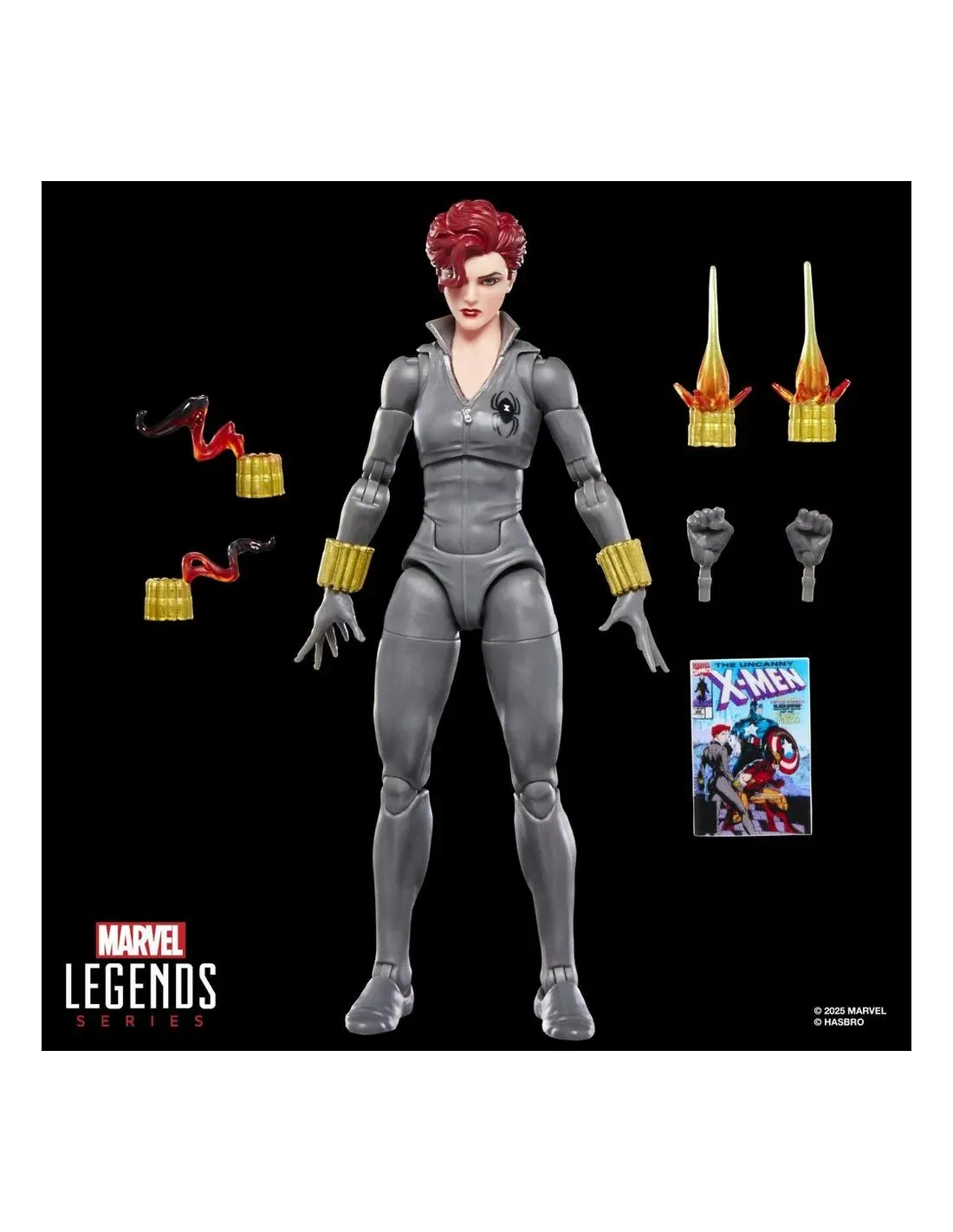 Características de la Figura Hasbro Marvel Legends Series Black WidowLa figura de acción **Black Widow de la línea Marvel Legends** está pensada para los fans de los cómics clásicos de Marvel que buscan una pieza de colección con diseño detallado y articulaciones funcionales. Inspirada en la aparición de Viuda Negra en el cómic *Uncanny X-Men #268 (1990)*, esta figura de 15 cm es ideal tanto para exhibición como para recrear escenas íconicas del universo Marvel.Diseño premium con gran nivel de detalleEsta versión de Viuda Negra presenta un acabado de alta calidad y una representación fiel al personaje de los cómics clásicos. Cada elemento de su atuendo ha sido cuidadosamente esculpido para reflejar su estilo original en los Vengadores y en Uncanny X-Men.Altura aproximada: 15 cm (escala 1:12)Articulaciones en cabeza, manos y piernas para mayor posabilidadDiseño basado en el cómic Uncanny X-Men #268 (1990)Accesorios intercambiables y extras coleccionablesIncluye 7 accesorios que permiten variar poses y estilos de exhibición. Entre ellos se encuentran manos alternativas y efectos de combate que aportan dinamismo a cualquier colección.2 manos alternativas intercambiables2 guanteletes con efecto de combate2 guanteletes con efecto de humoMini cómic de plástico con portada del Uncanny X-Men #268Ideal para coleccionistas y fans de MarvelLas figuras de la línea Marvel Legends destacan por su calidad y fidelidad visual. Esta edición de Black Widow es perfecta para recrear escenas o complementar vitrinas temáticas de los Vengadores o los X-Men.Producto licenciado por Marvel y HasbroIncluye figura + 7 accesoriosEdad recomendada: a partir de 4 añosSeguridad y advertenciasEste producto contiene piezas pequeñas y está destinado a niños mayores de 4 años. No es apto para menores de 3 años por riesgo de asfixia.Advertencia: peligro de asfixiaUso bajo la supervisión de un adultoOtras especificacionesFabricante: HasbroLínea: Marvel Legends SeriesMaterial: Plástico de alta calidadArticulaciones: Múltiples puntos de articulación