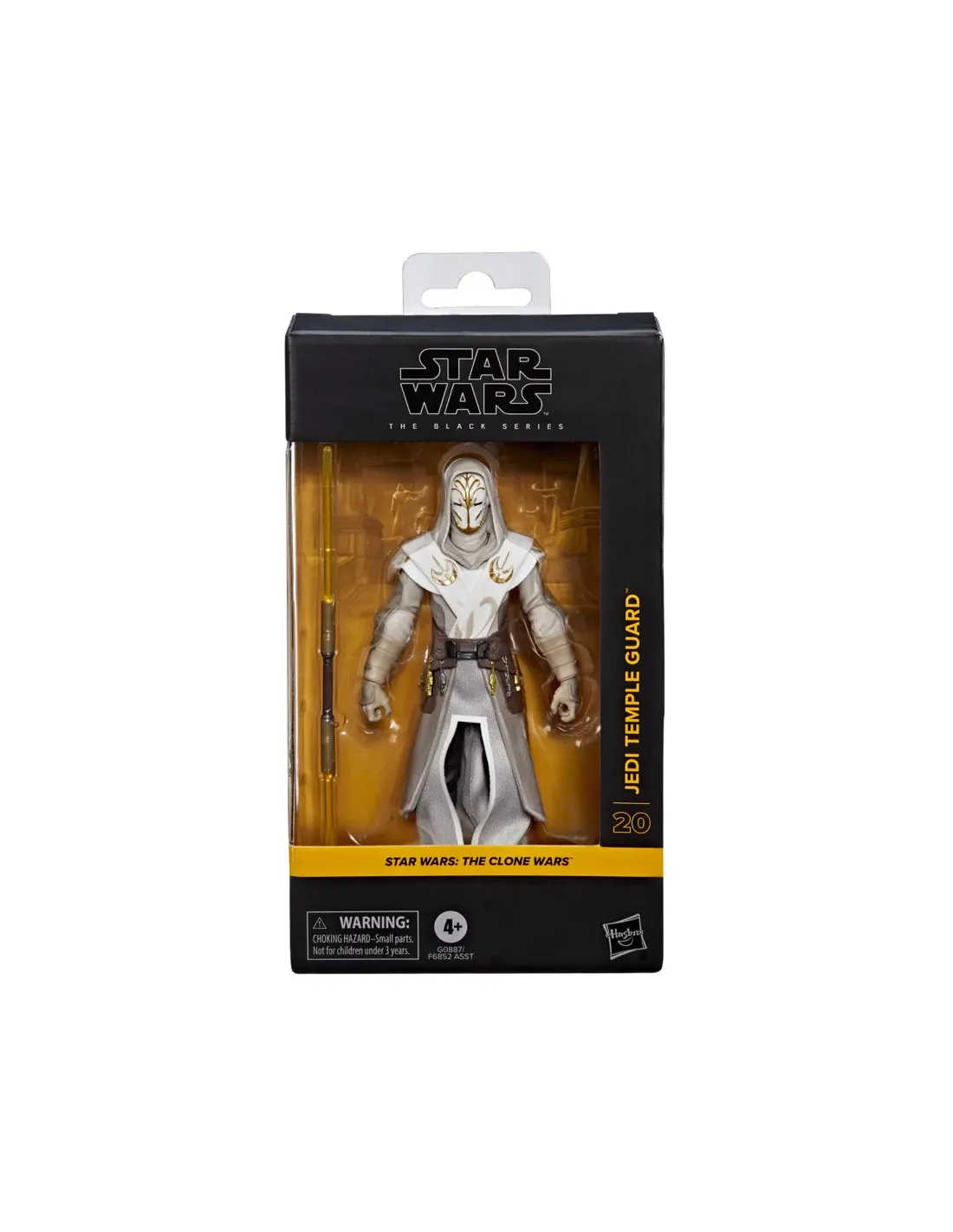Características de Star Wars The Black Series Jedi Temple GuardRevive la acción de la icónica serie animada **Star Wars: La Guerra de los Clones** con la figura de acción **Jedi Temple Guard** de la línea **The Black Series** de Hasbro. Diseñada para fans y coleccionistas, esta figura a escala de 15 cm destaca por su nivel de detalle, calidad de fabricación y fidelidad al personaje original. Ideal para exponer o recrear tus escenas favoritas de la saga.Diseño premium con gran artículaciónLa figura ofrece una experiencia visual y táctil superior gracias a su diseño detallado y acabados de alta calidad. Es perfecta tanto para la exposición como para el juego dinámico.Escala de 15 cm con proporciones precisasDetalles inspirados fielmente en la serie animadaMúltiples puntos de artículación para posarAccesorio incluido y presentación coleccionableLa figura incluye un accesorio inspirado en el personaje, ideal para personalizar poses o integrarlo en dioramas. Además, se presenta en un embalaje tipo caja con ventana, ideal para exponer sin necesidad de abrirla.Incluye accesorio temáticoEmbalaje de colección con diseño eleganteIdeal para fans de Star Wars a partir de 4 añosAmplía tu colección galácticaCombínala con otras figuras de 15 cm de **Star Wars The Black Series** para recrear escenas memorables o inventar tus propias historias. La línea incluye personajes, vehículos y artículos de rol inspirados en más de 40 años del universo Star Wars.Compatible con otras figuras de The Black SeriesInspirada en la serie Star Wars: The Clone WarsFabricada por Hasbro bajo licencia oficial de Lucasfilm Ltd.Otras especificacionesIncluye: Figura y accesorioEdad recomendada: A partir de 4 añosAdvertencia: No apto para menores de 3 años. Contiene piezas pequeñas© & ? Lucasfilm Ltd. / © 2025 Hasbro