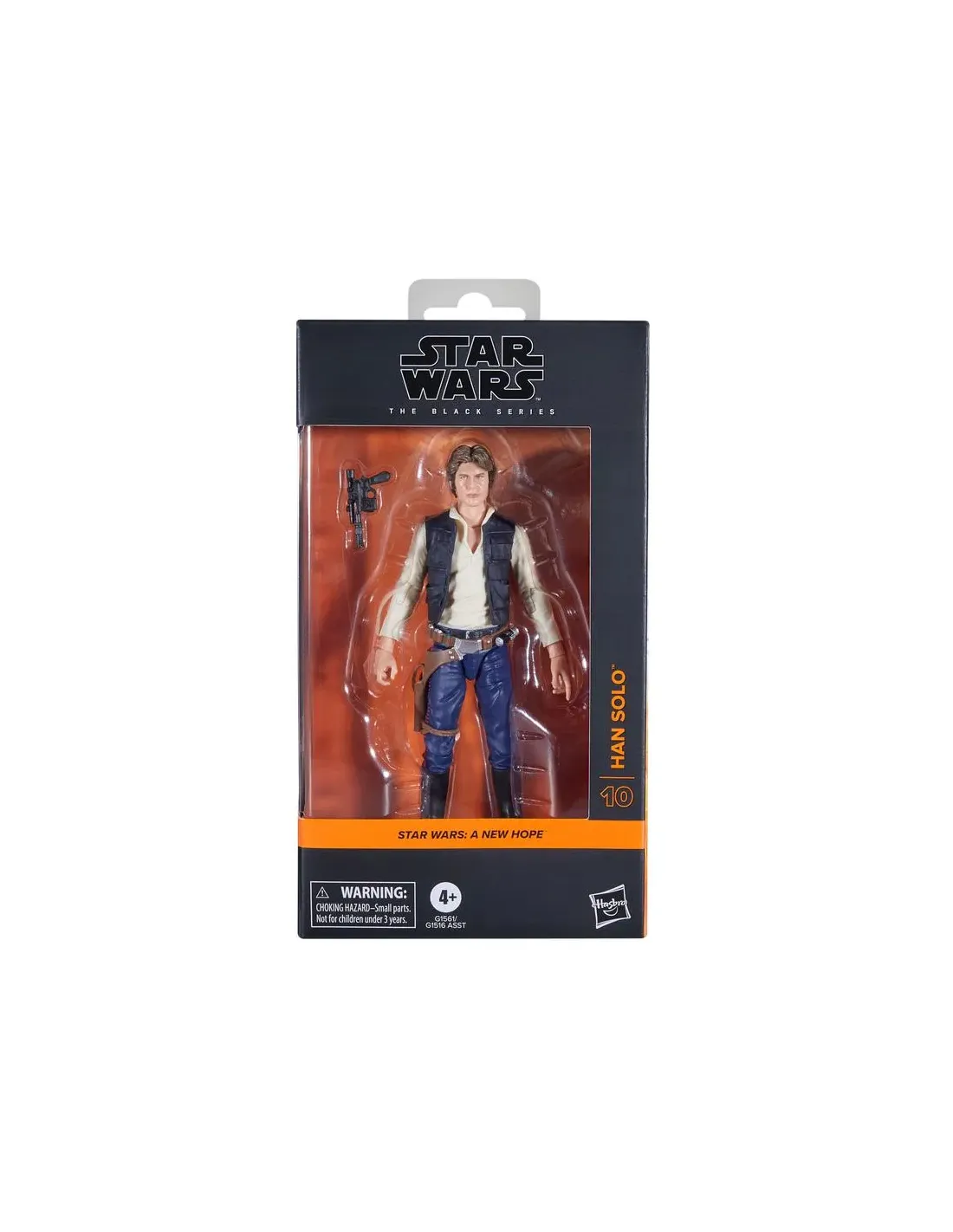 -GENERALProducto: Figura de acción Han Solo Línea: Star Wars The Black Series Licencia: Star Wars Fabricante: Hasbro Inspiración: *Star Wars: Una nueva esperanza* Edad recomendada: A partir de 4 años Nota: Los productos adicionales se venden por separado. Sujeto a disponibilidad-DIMENSIONESEscala de la figura: 15 cm-DESCRIPCIÓNLa línea Star Wars The Black Series incluye figuras, vehículos y artículos para juego de rol inspirados en los más de 40 años del legado de Star Wars. Esta figura de Han Solo ha sido diseñada con precisión para reflejar su apariencia en *Star Wars: Una nueva esperanza*, ofreciendo un nivel de detalle que encanta a los coleccionistas. Con su acabado premium y realismo sobresaliente, esta figura es una excelente adición para recrear escenas icónicas de la saga.-CONTENIDOIncluye: 1 figura y 1 accesorio