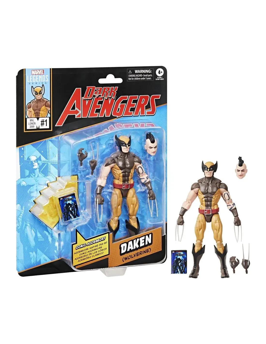 ¡Trae la emoción y la maravilla del Universo Marvel a tu colección con la figura de acción de Daken (Wolverine), de la línea Marvel Legends de Hasbro! Esta figura coleccionable a escala de 15 cm ha sido diseñada para verse igual al personaje de los cómics de Dark Avengers #1 (2009) de Marvel, y cuenta con diseño premium y cabeza, manos y piernas articulables.Este set de figura de acción Marvel viene con 4 accesorios, incluyendo 2 manos alternativas, una cabeza alternativa, así como un libro plástico de historietas a escala de 15 cm con la portada de Dark Avengers #1 (2009). Las figuras de acción Marvel de Hasbro a escala de 15 cm son ideales para exhibirlas en las colecciones de los fans. Reimagina escenas inspiradas en los cómics en tus estantes con las figuras de acción Marvel Legends y los artículos de colección de Marvel.