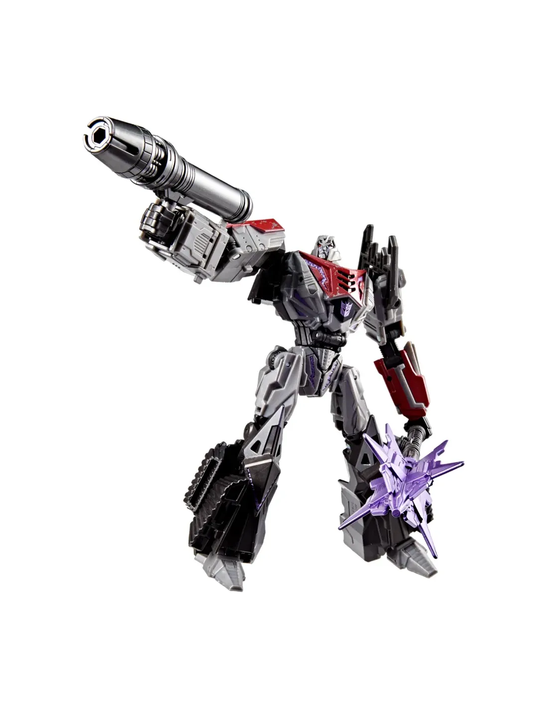 -COLECCIÓNTransformers Studio Series - MTMTE Collection-PERSONAJEMegatron, basado en su apariencia en el videojuego "Transformers: War for Cybertron".-TRANSFORMACIÓNSe transforma de robot a tanque en 21 pasos, manteniendo un alto nivel de detalle y fidelidad al juego.-DISEÑO Y DETALLESFigura de 16,5 cm con acabados realistas, incluyendo efectos visuales de rasguños de batalla que realzan su apariencia de combate.-ACCESORIOS INCLUIDOSIncluye 1 cañón de fusión y 1 maza de energón, ambos compatibles con los modos robot y tanque.-PRESENTACIÓNEmpaquetado en caja ilustrada con ventana, ideal para coleccionistas y fans de Transformers.