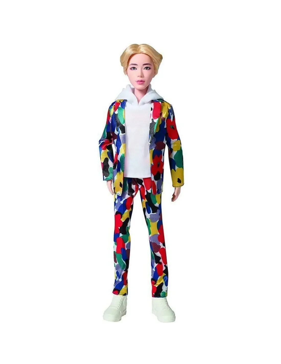 Mattel presenta la figura de Jin, miembro de la banda de música KoreanaBTS, compuesta por siete integrantes: Jin, Suga, J-Hope, RM, Jimin, V yJungkook. Esta figura viene vestida con un traje inspirado en la modaicónica del video musical Idol, y cuenta con 11 articulaciones.Adecuado para niños a partir de 6 años.