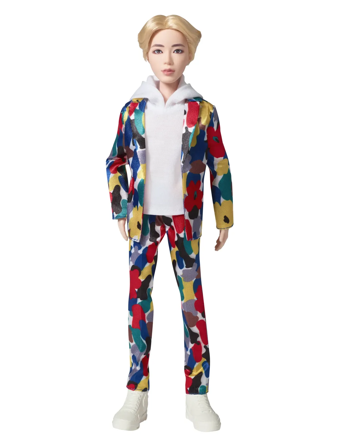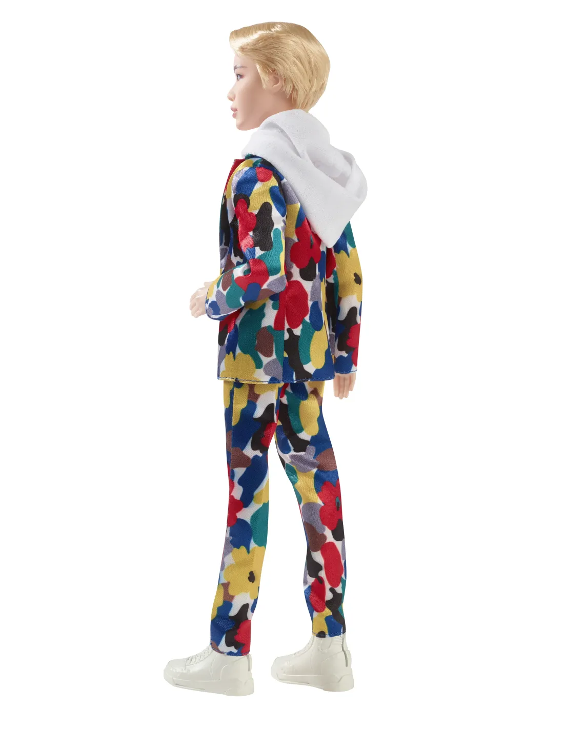 Mattel presenta la figura de Jin, miembro de la banda de música KoreanaBTS, compuesta por siete integrantes: Jin, Suga, J-Hope, RM, Jimin, V yJungkook. Esta figura viene vestida con un traje inspirado en la modaicónica del video musical Idol, y cuenta con 11 articulaciones.Adecuado para niños a partir de 6 años.