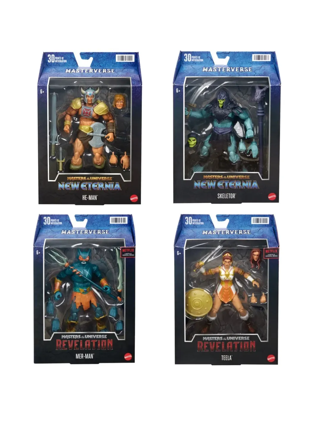 Mattel presenta la nueva colección de figuras para la serie deNetflix "He-man and the Masters of the Universe". Se trata de unaactualización de la licencia de este mundo ficticio de Sword & Sorcery ySciFi. Un nuevo diseño de personajes e indumentarias. En el surtido vienenincluidas las siguientes figuras:TEELA HDR44 x2MER-MAN HDR43 x2SKELETOR HDR38 x1HE-MAN HDR37 x1