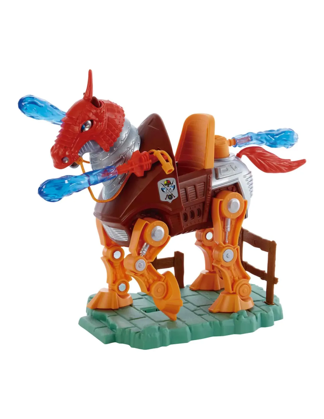 Mattel presenta la nueva colección Origins para la serie Masters of theUniverse. Se trata de una revisión actualizada de las figuras originales delos años 80 basadas en este mundo ficticio de Sword & Sorcery y SciFi. Unmismo diseño con mejoras de producción, detalle y con más posibilidadesde articulación. En esta ocasión se trata del caballo de guerra cyborgStridor que sirve de montura para los héroes de Etenia. Incluye efectos dedisparo.