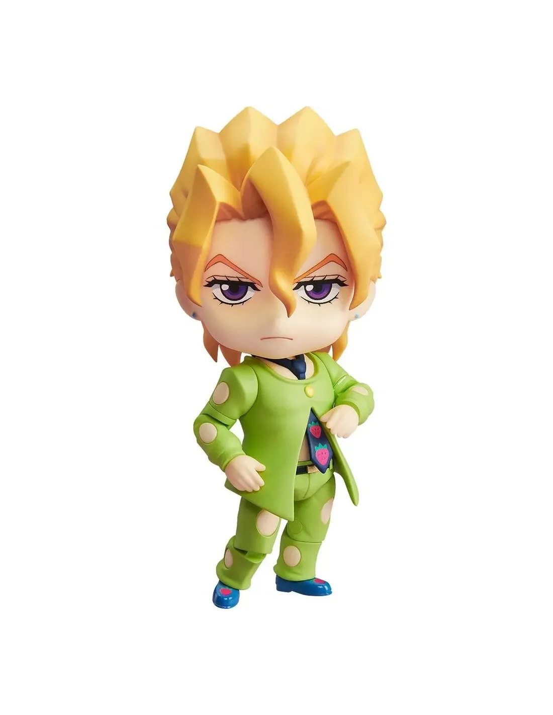 -FIGURAFigura articulada de Pannacotta Fugo perteneciente a la colección Nendoroid. Basada en su aparición en el anime "Jojo's Bizarre Adventure: Golden Wind", con un diseño fiel al personaje y una altura de 10 cm.-ACCESORIOS INCLUIDOSIncluye tres placas faciales intercambiables (expresión estándar, enfadada y sonriente), varias manos opcionales para recrear poses dinámicas, un cuaderno, un tenedor y el espejo trampa.-POSIBILIDADES DE EXHIBICIÓNGracias a sus múltiples accesorios y articulaciones, permite una gran variedad de poses inspiradas en escenas del anime. Puede combinarse con la figura de Narancia Ghirga (se vende por separado) para una exposición conjunta.-DIMENSIONESAltura aproximada: 10 cm.