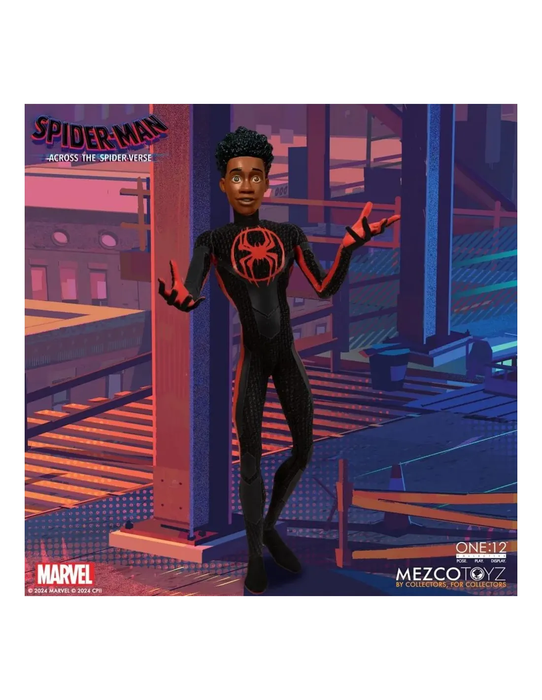 Características de la figura Spider-Man: Miles Morales One:12 CollectiveLa figura de **Miles Morales**, parte de la exclusiva colección **One:12 Collective** de Mezco Toyz, está inspirada en su aparición en la película *Spider-Man: Across the Spider-Verse*. Diseñada para coleccionistas exigentes, esta figura de alta calidad ofrece un nivel de detalle sobresaliente y amplias posibilidades de posado gracias a sus numerosos puntos de articulación. Ideal tanto para exponer como para recrear escenas icónicas del multiverso arácnido.Diseño articulado y escala realistaCon aproximadamente **17 cm de altura** y más de **28 puntos de articulación**, esta figura permite una gran variedad de poses dinámicas. El traje está confeccionado en tela auténtica, respetando fielmente el estilo visual de la película.Altura aproximada: 17 cmMás de 28 puntos de articulaciónAcabado premium con tela detalladaAccesorios intercambiables y efectos especialesIncluye una completa selección de accesorios para personalizar al personaje y enriquecer su exhibición. Desde cabezas alternativas hasta efectos visuales de telaraña, cada componente está cuidadosamente diseñado para capturar la esencia del personaje.4 cabezas intercambiables con diferentes expresiones10 manos intercambiables para diversas poses5 efectos de telaraña para simulaciones de combate1 cómic exclusivo incluido1 efecto visual Spider-Sense FXBase de exposición con logotipo oficialSoporte ajustable para poses en el aireOtras especificacionesFabricante: Mezco ToyzLínea: One:12 CollectiveBasado en: Spider-Man: Across the Spider-Verse