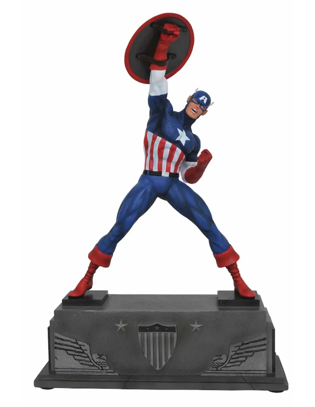 Diamond Select Toys presenta esta estatua basada en Capitán Américapara la colección Marvel Premier Collection. Esta estatua está hecha enresina y mide unos 30 cm de alto. Se muestra a Capitán América en unapose icónica, inspirada en el clásico arte de Jim Steranko de la portada deCapitán América # 111. Esta estatua esculpida por Clayburn Moore estálimitada a 3000 unidades numeradas manualmente e incluye certificado deautenticidad.