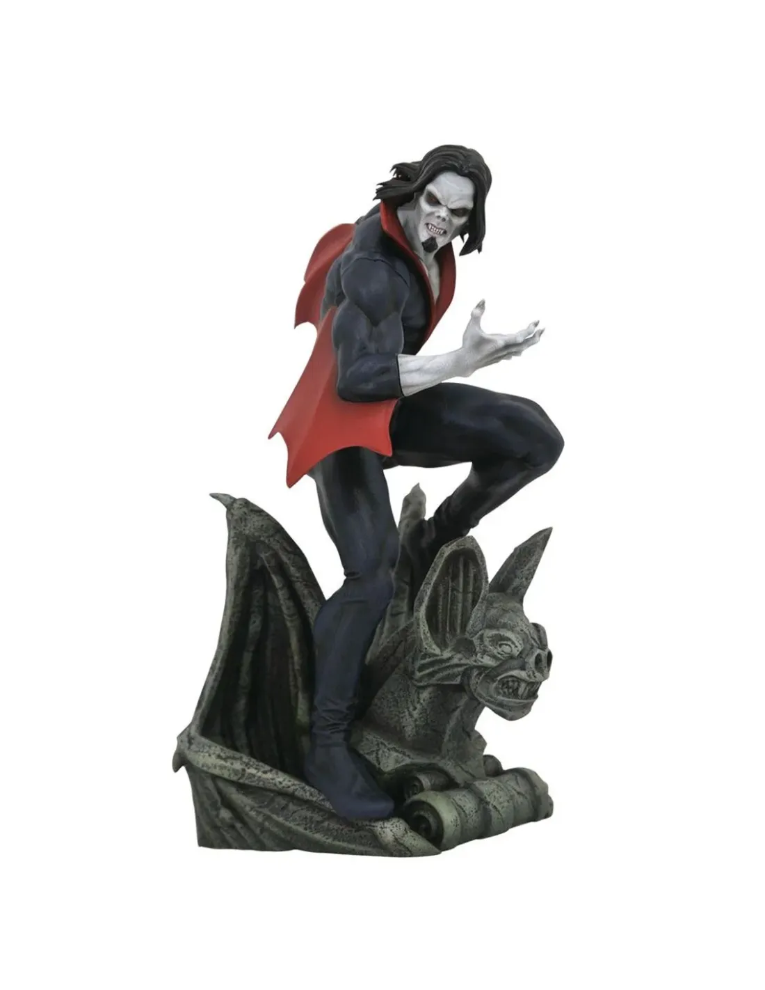 Diamond Select Toys presenta la figura de Morbius, el vampiro viviente delUniverso Marvel. Esta figura está hecha en PVC, mide unos 25 cm y muestraal antihéroe Michael Morbius sobre una amenazante gárgola mirando a lamultitud como suministro de alimento. Diseñada por Caesar y esculpida porAlterton.