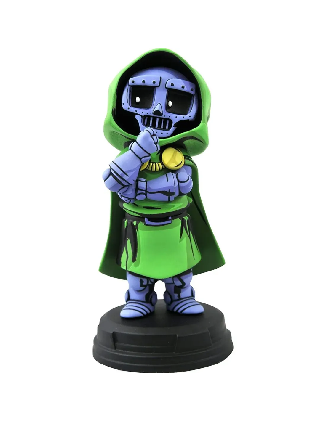 Diamond Select Toys presenta la figura de Doctor Doom, para la colecciónMarvel Animated Style. La estatua muestra a Doctor Doom, el monarca deLatveria, en una pose pensativa quizás debatiendo cual de sus adorablesataques desatara a un enemigo desprevenido, basada en la variada portadade Marvel Comics. La estatua mide unos 13 cm, esta hecha de resina, ha sidoesculpida por Paul Harding e incluye un certificado de autenticidad.