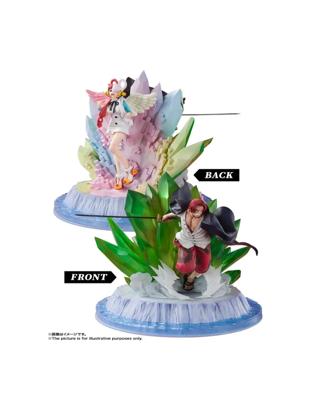 Tamashii Nations presenta, dentro de su linea de productos dedicados a la exitosa serie de manga "One Piece", esta figura de Shanks y Uta. Estos dos personajes se unen a la serie Extra Battle, que los representa alimpresionante Sharks y a la preciosa diva Uta evocando la Elegia de 'Island of Music'. Incluye base soporte para su exposicion.