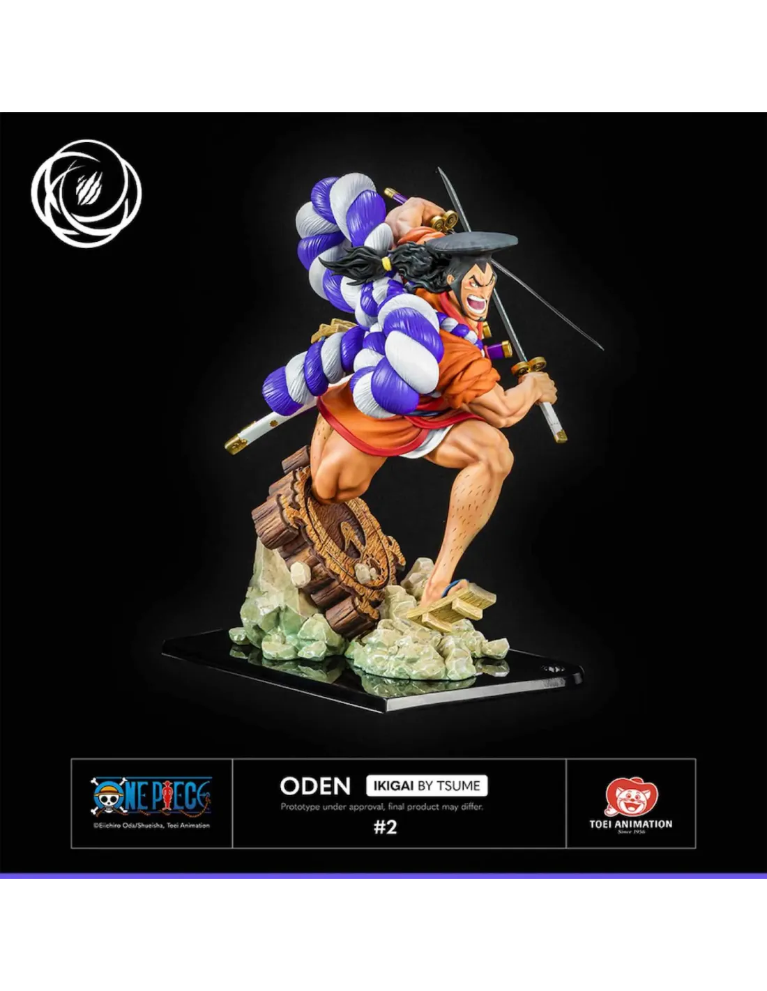 Tsume Arts presenta para la coleccin Ikigai la estatua de Oden, del popular manga y anime "One Piece". Esta estatua de resina tiene una escala de 1/6 y mide 44,5x36x22,5 cm e incluye una base soporteespecial para exposicin. Como verdadero seguidor del combate de dos sables, el colosal daimyo ha desarrollado su propio Nitoryu: el estilo Oden de dos espadas. Se precipita directamente hacia suenemigo cruzando sus dos espadas legendarias, Ame no Habakiri "el sable que puede cortar el cielo mismo" con Enma "el sable que puede cortar las profundidades del infierno", drenando todo suarmamento Haki. El lder de los Nueve Vainas Rojas posee la nica arma capaz de herir a Kaido y no muestra piedad. Descansando sobre unos racimos rocosos y reflexionando sobre la base lacada ennegro, encontramos el pajaro simbolico de la familia Kozuki, grabado para siempre en madera como recuerdo. ODEN ESTATUA RESINA ESCALA 1/6 (44,5x36x22,5 CM) ONE PIECE IKIGAI BY TSUME