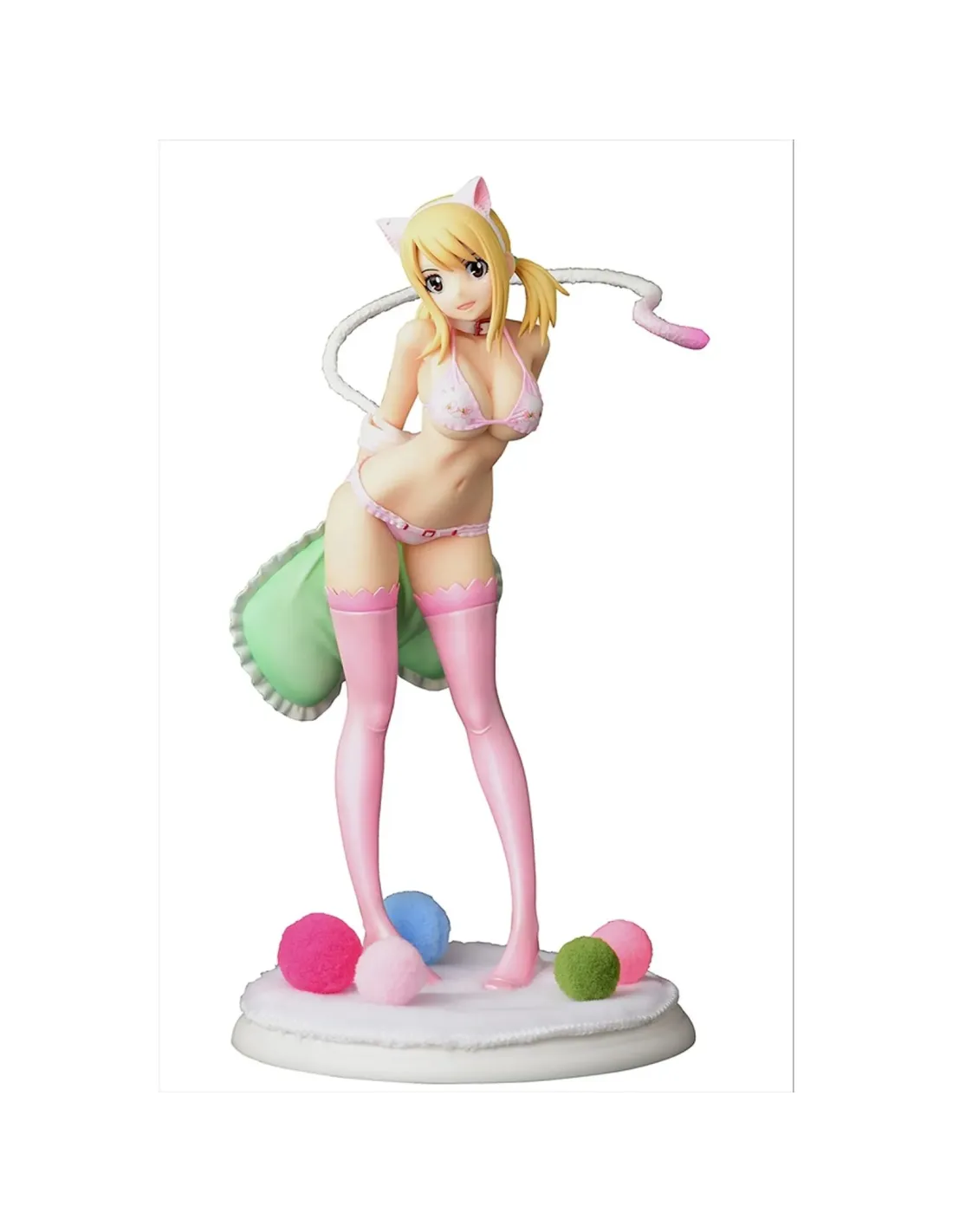 Orcatoys presenta la figura de Lucy Heartfilia Cherry Blossom Version. La figura mide 24,5 cm a una escala de 1/6 y esta basada en el anime "Fairy Tail". Aparece con unas orejas de gatito y conhermosos patrones de flores de cerezo. El cojín que sujeta se puede quitar para poder exhibirla de diferentes maneras. Se puede apreciar como captura la elegancia y el encanto de Lucy mientrasposa con su impresionante atuendo inspirado en Sakura. Tiene una base tematica para su exhibición y viene en una caja con ventana."